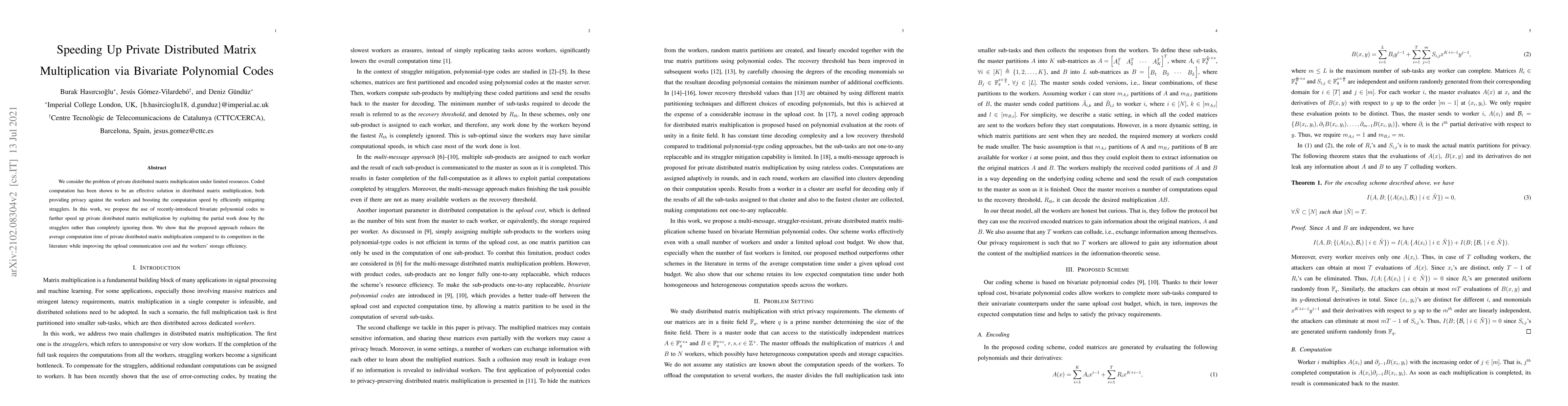 This paper proposes using bivariate polynomial codes to enhance private distributed matrix multiplication, leveraging the partial work of stragglers to reduce computation time and improve communication and storage efficiency compared to existing methods. The approach achieves a reduction in average computation time and better resource utilization.