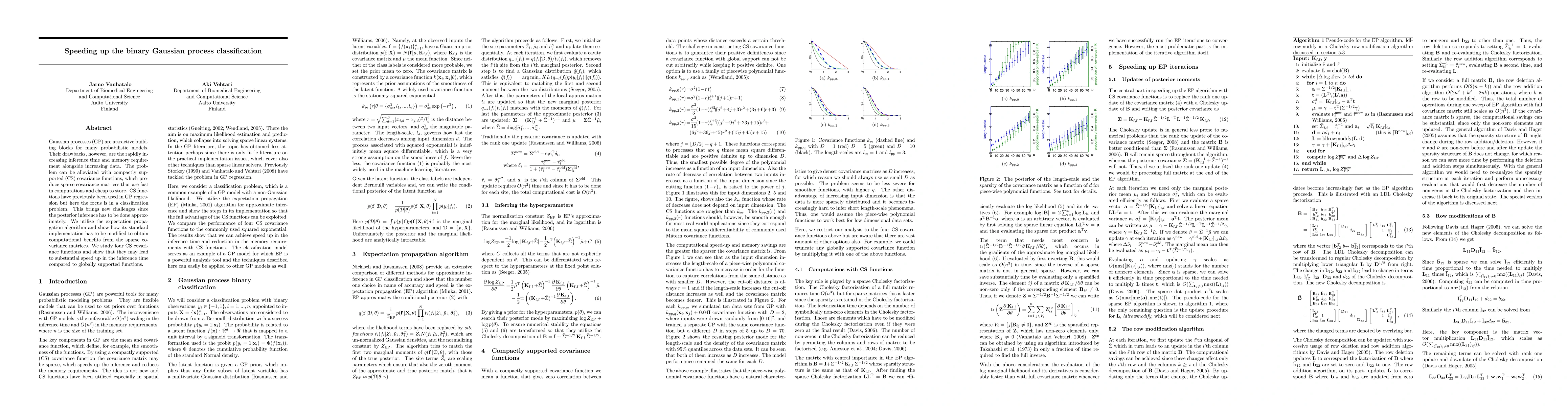 Gaussian processes (GP) are attractive building blocks for many probabilistic models. Their drawbacks, however, are the rapidly increasing inference time and memory requirement alongside increasing data. The problem can be alleviated with compactly supported (CS) covariance functions, which produce sparse covariance matrices that are fast in computations and cheap to store. CS functions have previously been used in GP regression but here the focus is in a classification problem. This brings new challenges since the posterior inference has to be done approximately. We utilize the expectation propagation algorithm and show how its standard implementation has to be modified to obtain computational benefits from the sparse covariance matrices. We study four CS covariance functions and show that they may lead to substantial speed up in the inference time compared to globally supported functions.