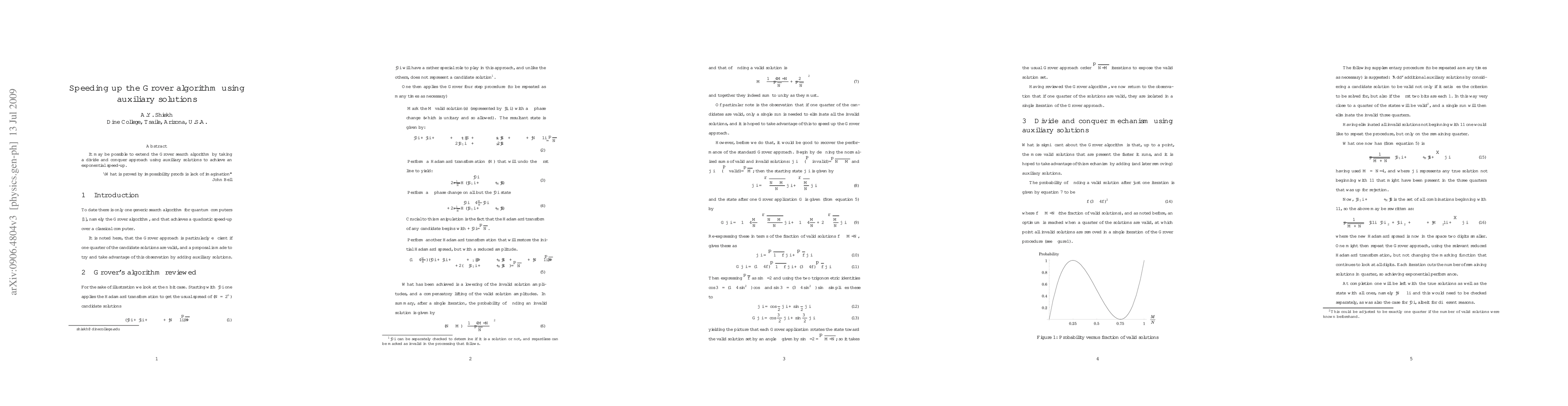 It may be possible to extend the Grover search algorithm by taking a divide and conquer approach using auxiliary solutions to achieve an exponential speed-up.