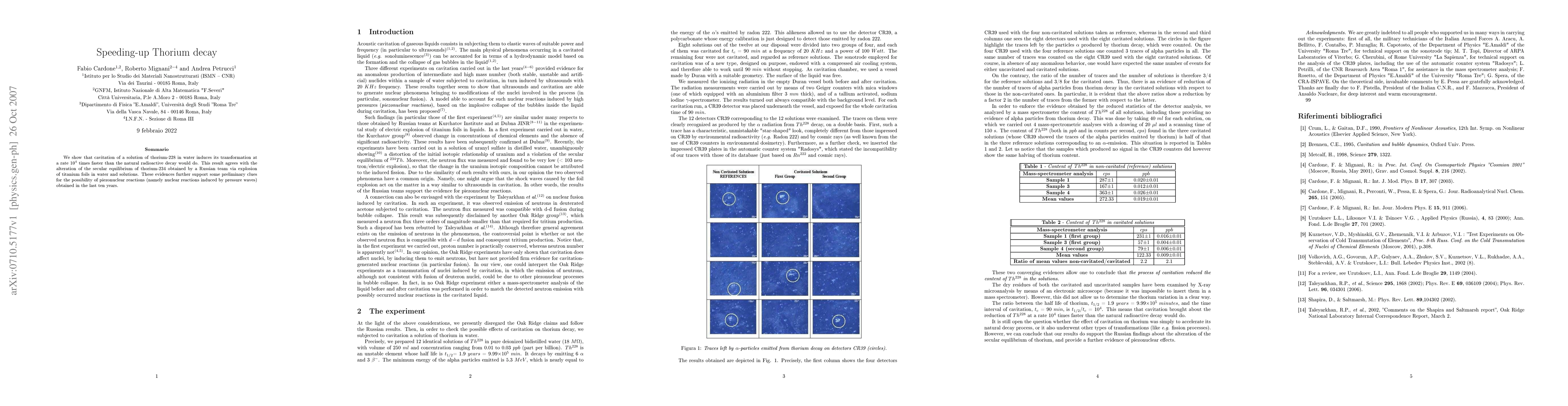 This study demonstrates that cavitation in a thorium-228 water solution accelerates its decay by 10,000 times compared to natural radioactive decay, supporting the concept of piezonuclear reactions induced by pressure waves. This finding aligns with previous results from a Russian team using titanium foils in water.