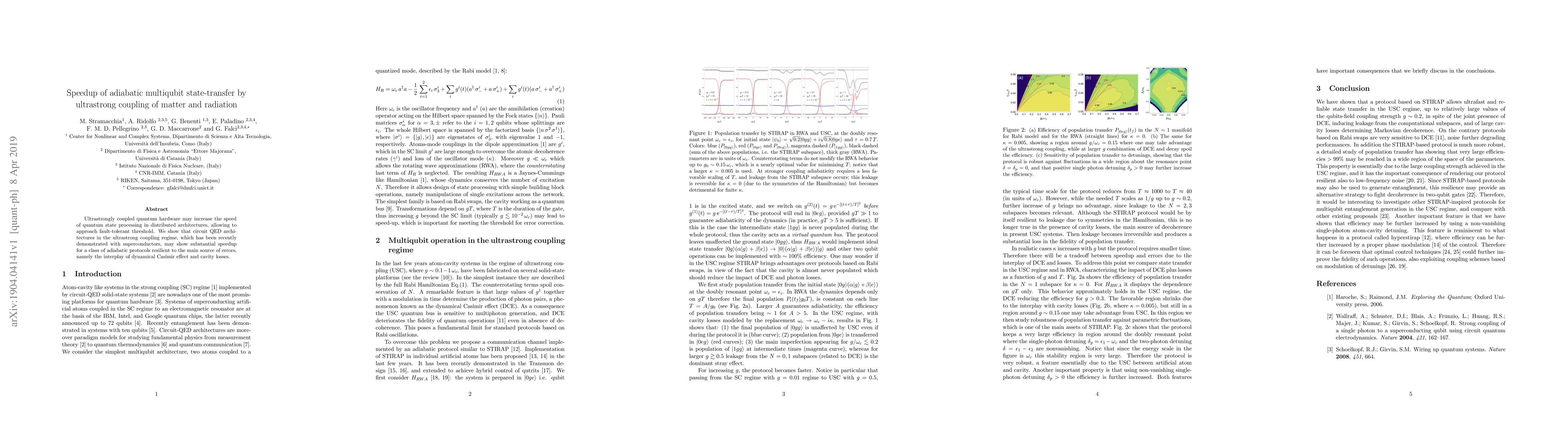 This paper demonstrates that ultrastrongly coupled circuit QED architectures can significantly accelerate adiabatic multiqubit state-transfer, mitigating errors from the dynamical Casimir effect and cavity losses, thus approaching fault-tolerant quantum processing thresholds.