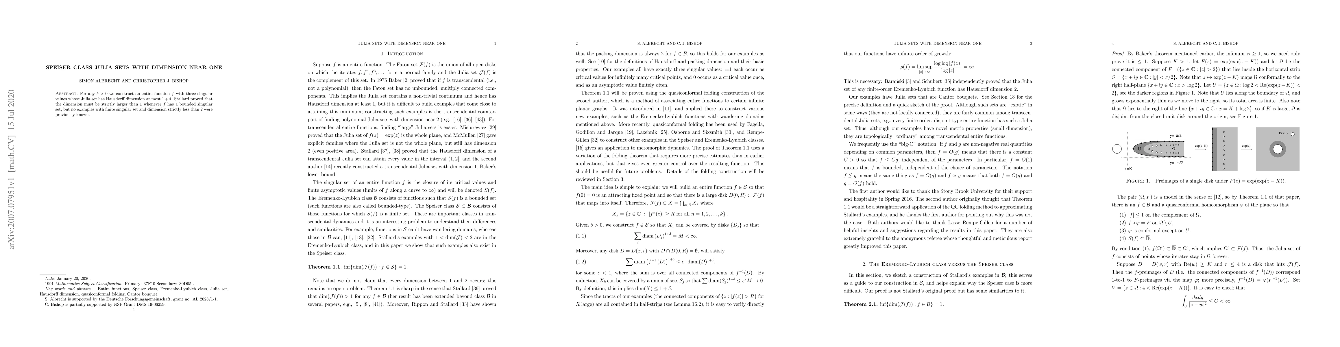 For any $ \delta >0$ we construct an entire function $f$ with three singular values whose Julia set has Hausdorff dimension at most $1=\delta$. Stallard proved that the dimension must be strictly larger than 1 whenever $f$ has a bounded singular set, but no examples with finite singular set and dimension strictly less than 2 were previously known.