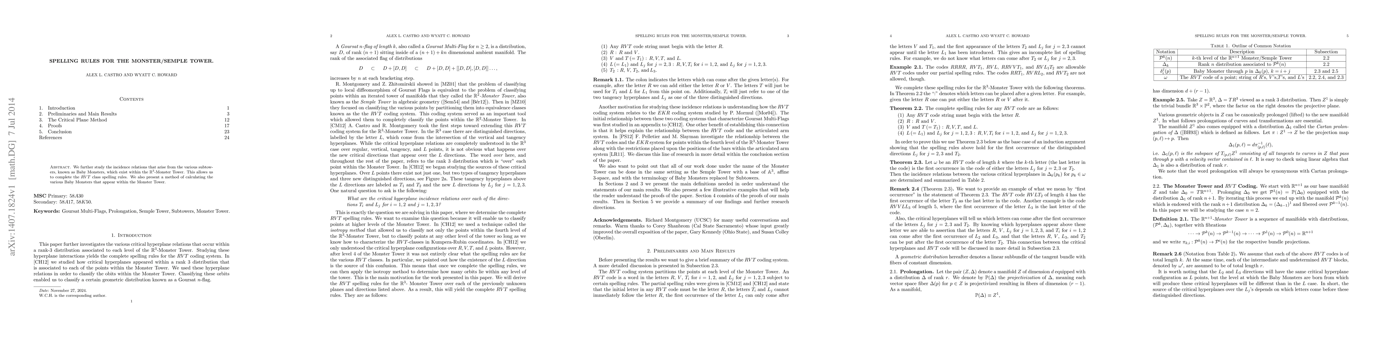 We further study the incidence relations that arise from the various subtowers, known as Baby Monster, which exist within the $\mathbb{R}^{3}$-Monster Tower. This allows us to complete the $RVT$ class spelling rules. We also present a method of calculating the various Baby Monster that appear within the Monster Tower.