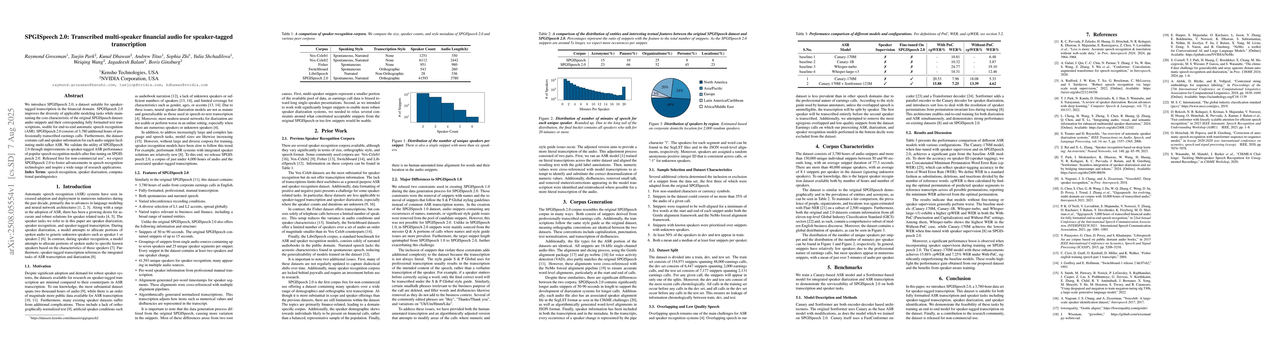We introduce SPGISpeech 2.0, a dataset suitable for speaker-tagged transcription in the financial domain. SPGISpeech 2.0 improves the diversity of applicable modeling tasks while maintaining the core characteristic of the original SPGISpeech dataset: audio snippets and their corresponding fully formatted text transcriptions, usable for end-to-end automatic speech recognition (ASR). SPGISpeech 2.0 consists of 3,780 additional hours of professionally transcribed earnings calls. Furthermore, the dataset contains call and speaker information for each audio snippet facilitating multi-talker ASR. We validate the utility of SPGISpeech 2.0 through improvements in speaker-tagged ASR performance of popular speech recognition models after fine-tuning on SPGISpeech 2.0. Released free for non-commercial use, we expect SPGISpeech 2.0 to foster advancements in speech recognition technologies and inspire a wide range of research applications.