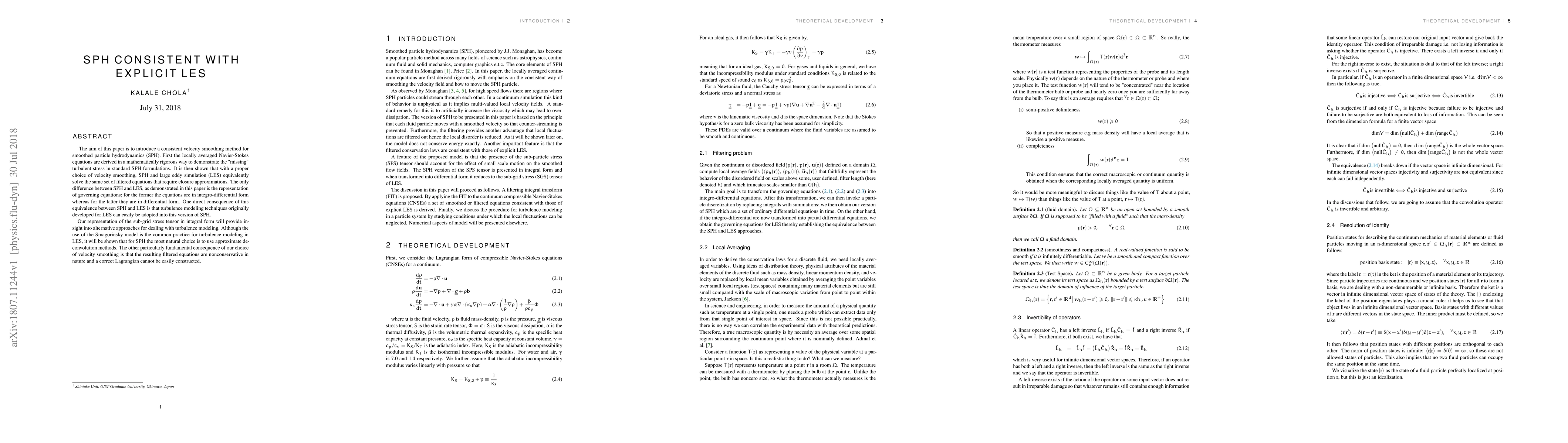 The aim of this paper is to introduce a consistent velocity smoothing method for smoothed particle hydrodynamics (SPH). First the locally averaged Navier-Stokes equations are derived in a mathematically rigorous way to demonstrate the "missing" turbulent stress in standard SPH formulations. It is then shown that with a proper choice of velocity smoothing, SPH and large eddy simulation (LES) equivalently solve the same set of filtered equations that require closure approximations. The only difference between SPH and LES, as demonstrated in this paper is the representation of governing equations; for the former the equations are in integro-differential form whereas for the latter they are in differential form. One direct consequence of this equivalence between SPH and LES is that turbulence modeling techniques originally developed for LES can easily be adopted into this version of SPH. Our representation of the sub-grid stress tensor in integral form will provide insight into alternative approaches for dealing with turbulence modeling. Although the use of the Smagorinsky model is the common practice for turbulence modeling in LES, it will be shown that for SPH the most natural choice is to use approximate deconvolution methods. The other particularly fundamental consequence of our choice of velocity smoothing is that the resulting filtered equations are nonconservative in nature and a correct Lagrangian cannot be easily constructed.