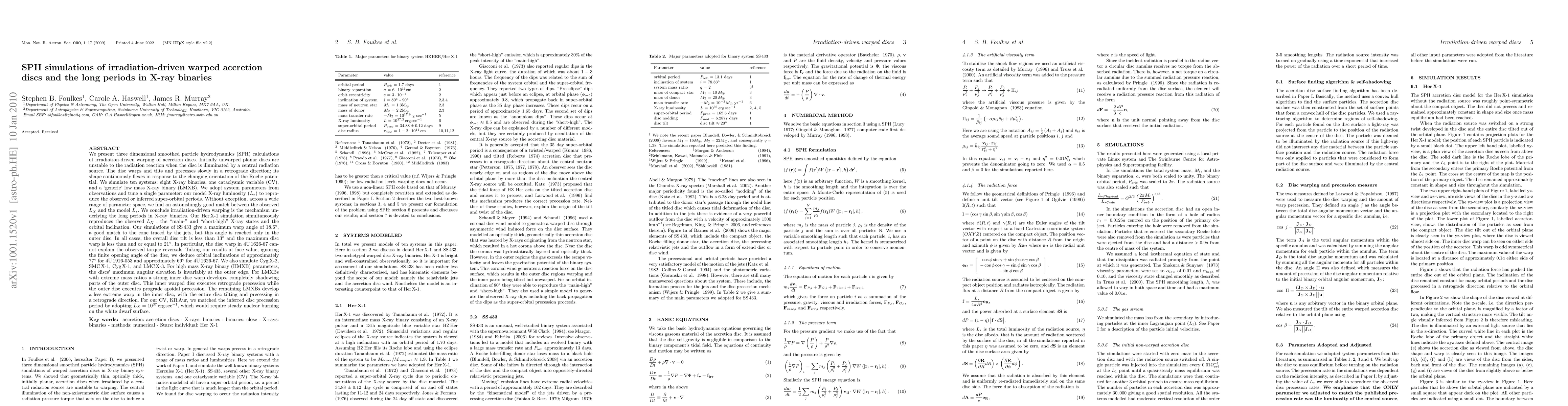 This paper uses smoothed particle hydrodynamics (SPH) simulations to study the irradiation-driven warping of accretion discs in X-ray binaries, finding that such warping explains the long observed periods. The simulations match observed X-ray luminosities and states, indicating warping as the underlying mechanism.