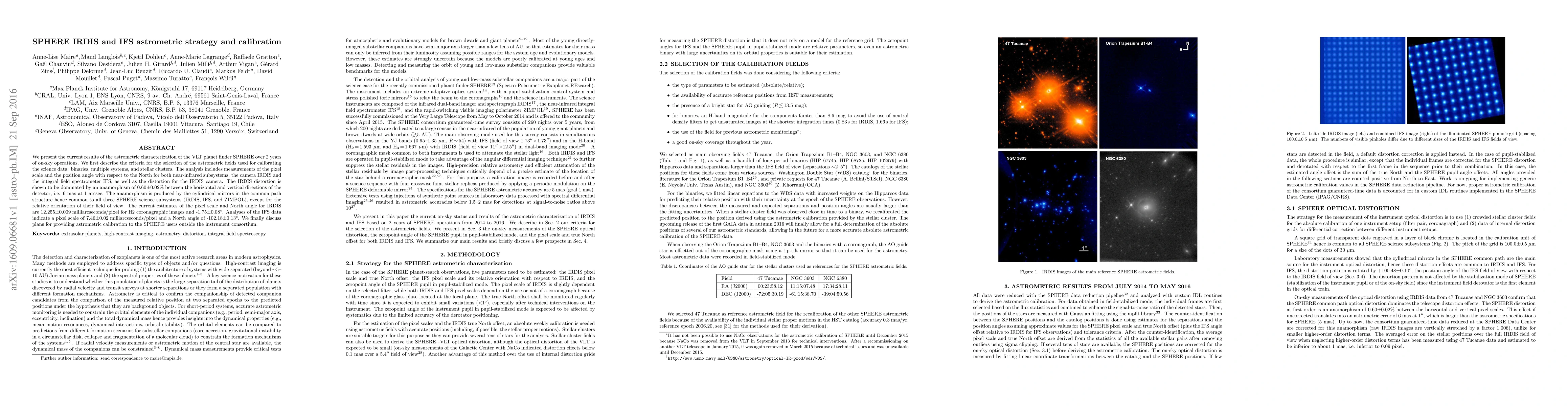 This paper details the astrometric calibration of the SPHERE instrument on the VLT, focusing on the IRDIS camera and IFS spectrometer. It reports on the selection criteria for calibration fields and measures pixel scales, position angles, and distortion, revealing an anamorphism of 0.60% in IRDIS, with plans for broader astrometric calibration dissemination.