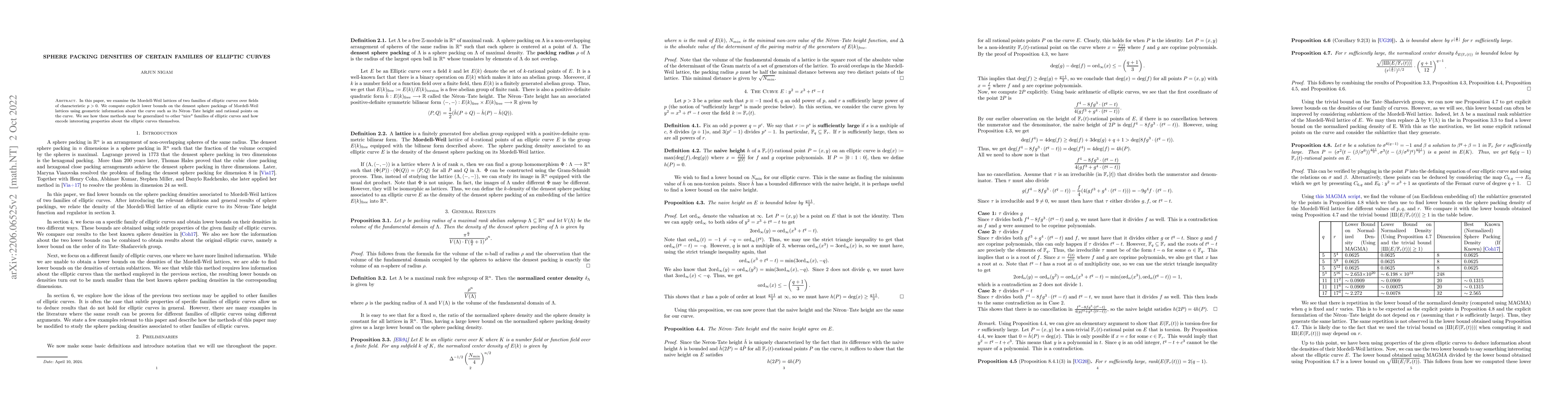 This paper investigates maximal rank sublattices within the Mordell-Weil lattices of two families of elliptic curves over fields with characteristic $p > 0$. It provides explicit lower bounds for the densest sphere packings of these sublattices by determining minimal norms and calculating their fundamental domain volumes.