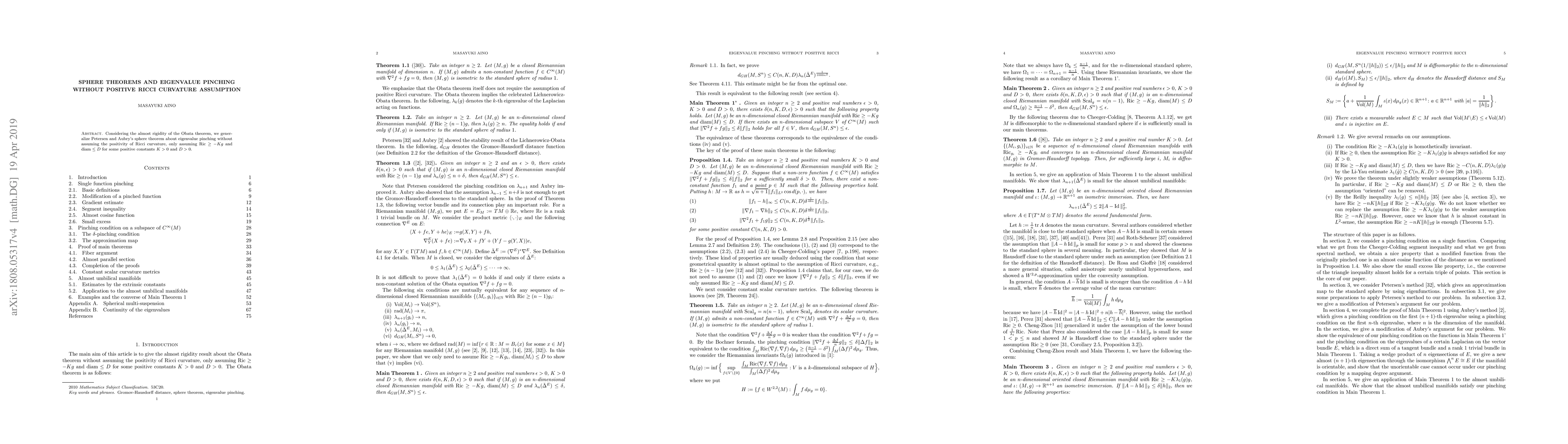 This paper generalizes Petersen and Aubry's sphere theorem to show eigenvalue pinching without positive Ricci curvature, assuming only non-negative curvature boundedness and diameter constraints.