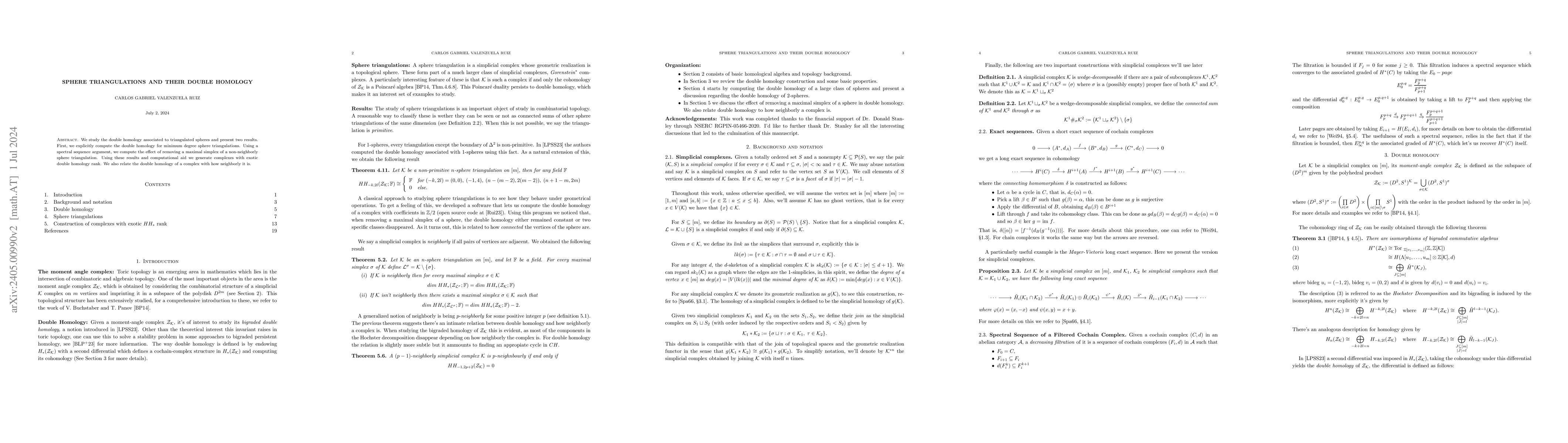 The paper studies sphere triangulations and their double homology, employing spectral sequences and computational aids to compute double homology ranks and relate neighborliness to double homology.