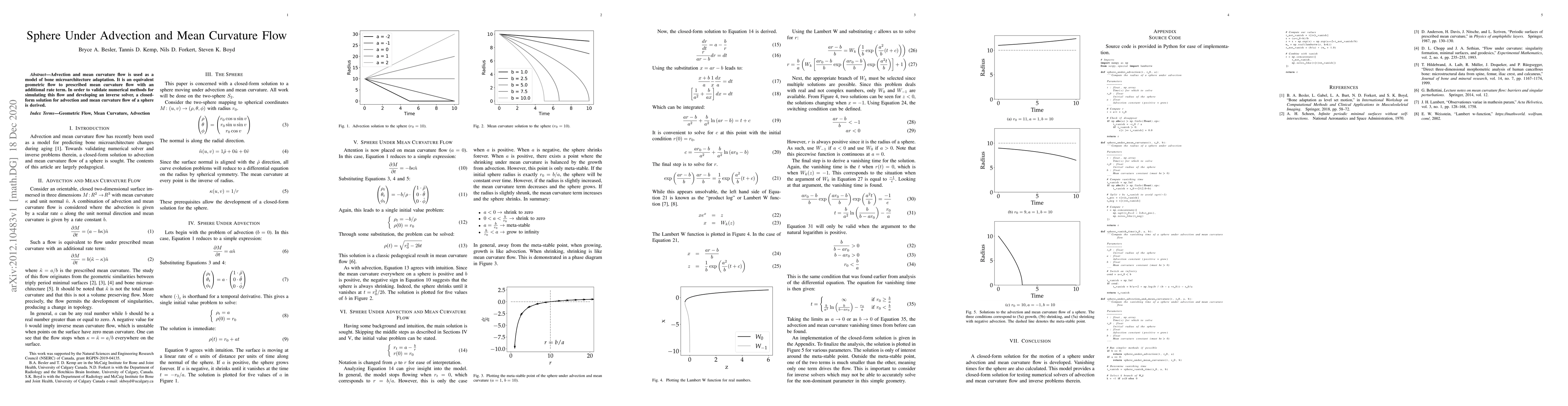 This paper derives a closed-form solution for the advection and mean curvature flow of a sphere, which serves to validate numerical methods for simulating bone microarchitecture adaptation and to develop an inverse solver. The model is an equivalent geometric flow to prescribed mean curvature flow with an additional rate term.