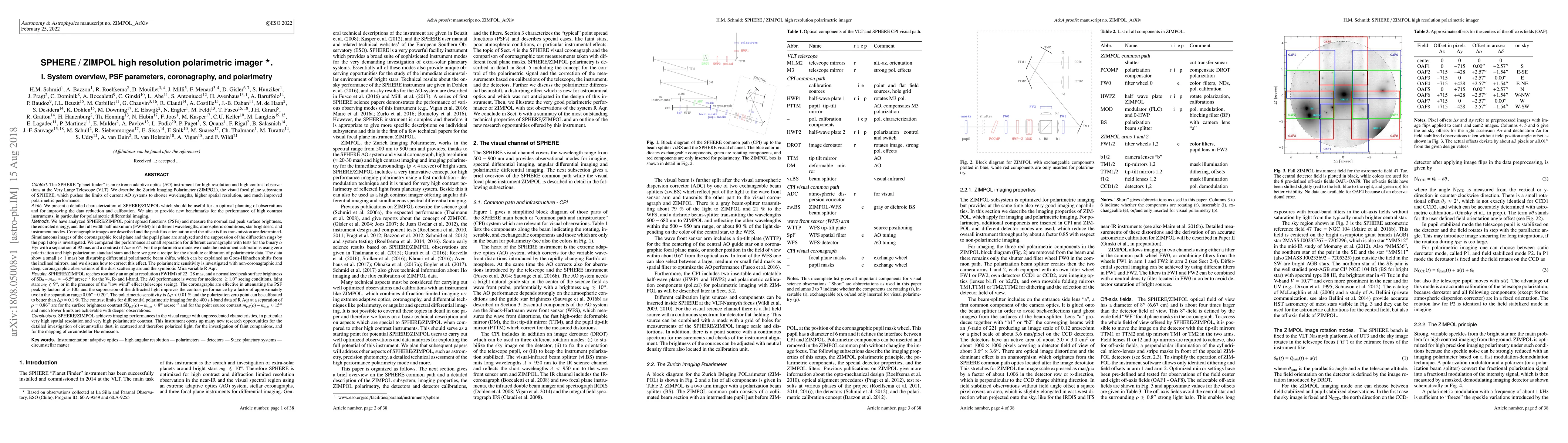The paper presents the SPHERE/ZIMPOL high-resolution polarimetric imager, detailing its subsystem capabilities, PSF parameters, coronagraphy, and polarimetry. It benchmarks the instrument's performance in high-contrast imaging, particularly in polarimetric differential imaging, and discusses methods for correcting differential polarimetric beam shifts.