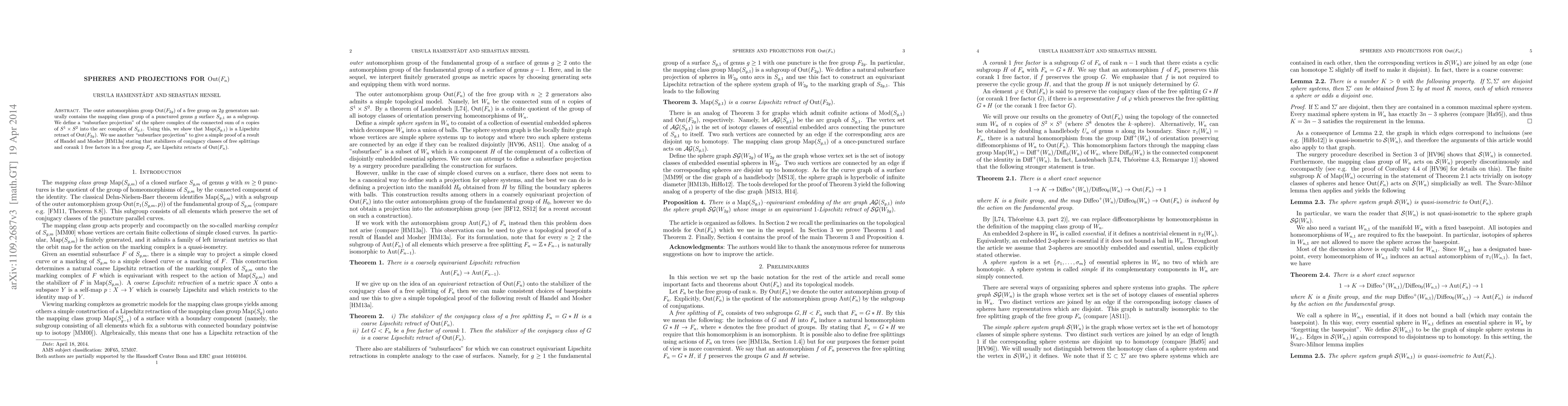 The outer automorphism group Out(F_2g) of a free group on 2g generators naturally contains the mapping class group of a punctured surface as a subgroup. We define a subsurface projection of the sphere complex of the connected sum of n copies of S^1 x S^2 into the arc complex of the surface and use this to show that this subgroup is a Lipschitz retract of Out(F_2g). We also use subsurface projections to give a simple proof of a result of Handel and Mosher [HM10] stating that stabilizers of conjugacy classes of free splittings and corank 1 free factors in a free group Fn are Lipschitz retracts of Out(F_n).