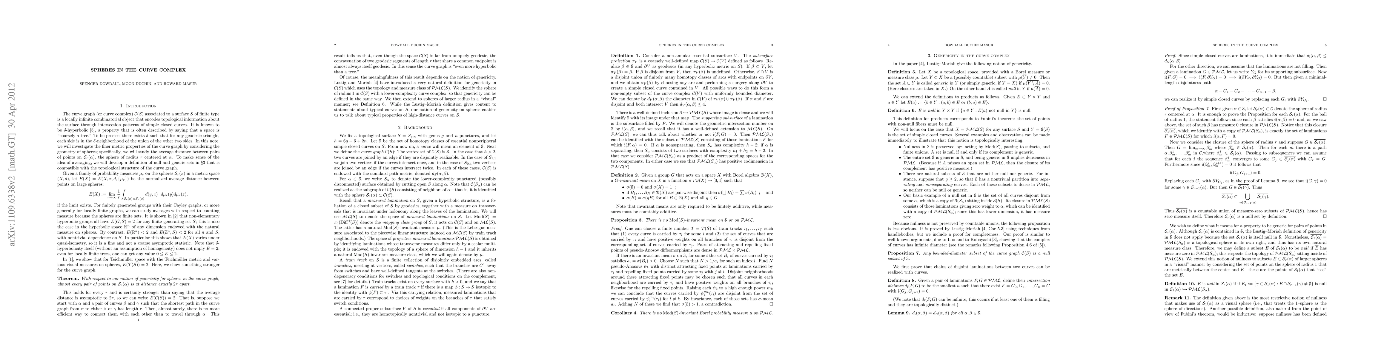 In this paper we study the geometry of metric spheres in the curve complex of a surface, with the goal of determining the "average" distance between points on a given sphere. Averaging is not technically possible because metric spheres in the curve complex are countably infinite and do not support any invariant probability measures. To make sense of the idea of averaging, we instead develop definitions of null and generic subsets in a way that is compatible with the topological structure of the curve complex. With respect to this notion of genericity, we show that pairs of points on a sphere of radius R almost always have distance exactly 2R apart, which is as large as possible.