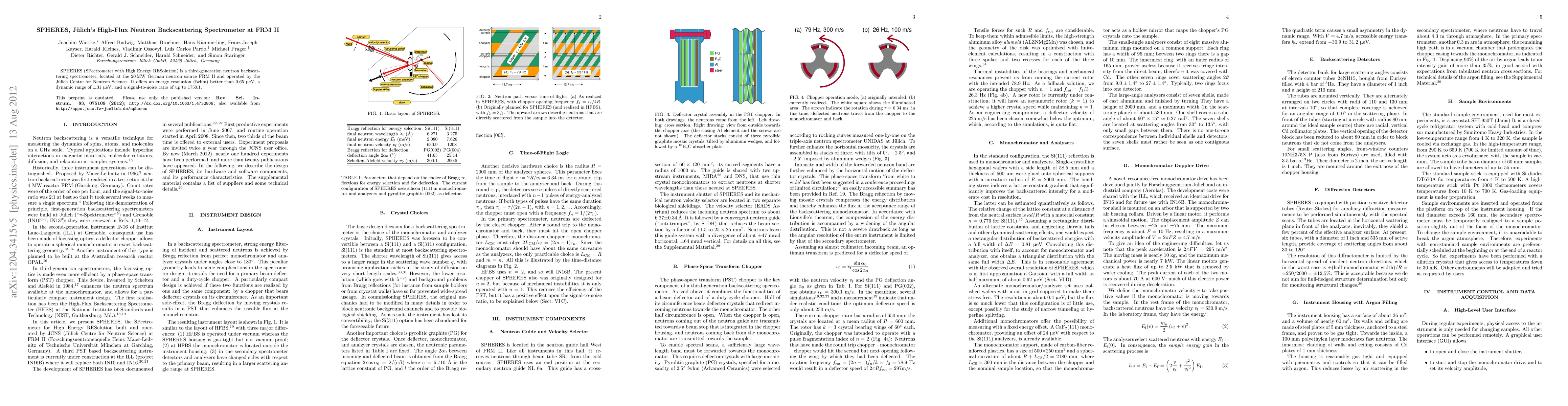 SPHERES is a high-resolution neutron backscattering spectrometer at the FRM II neutron source, providing exceptional energy resolution, a wide dynamic range, and a high signal-to-noise ratio for advanced material research.