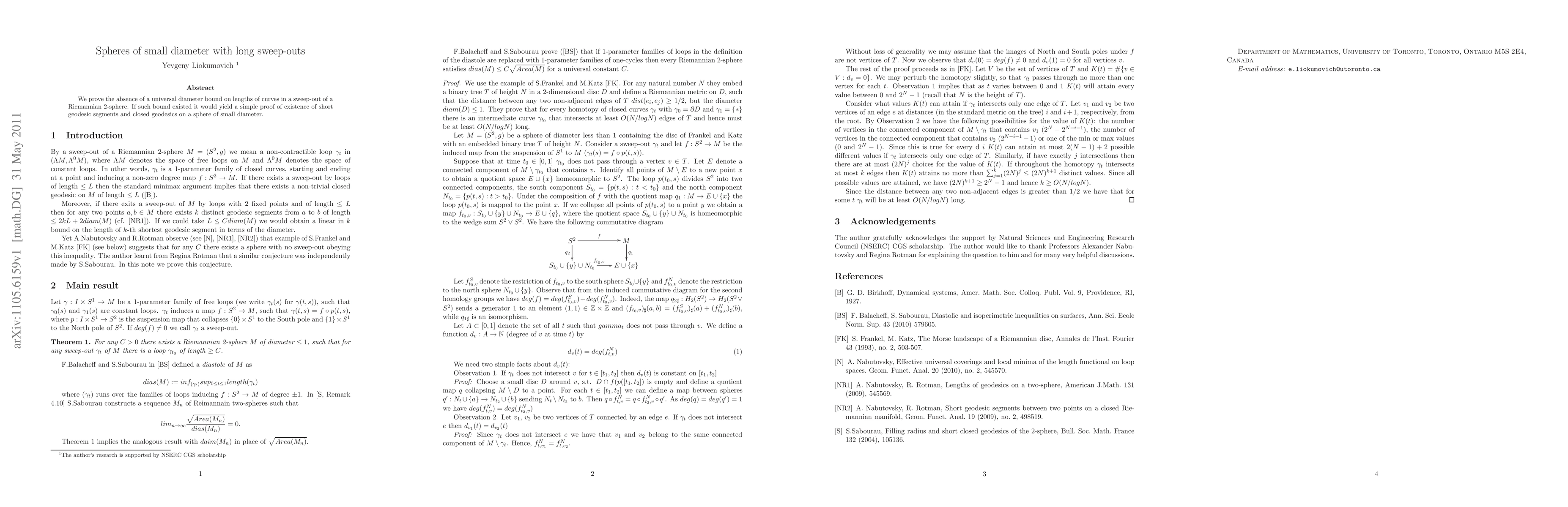 We prove the absence of a universal diameter bound on lengths of curves in a sweep-out of a Riemannian 2-sphere. If such bound existed it would yield a simple proof of existence of short geodesic segments and closed geodesics on a sphere of small diameter.