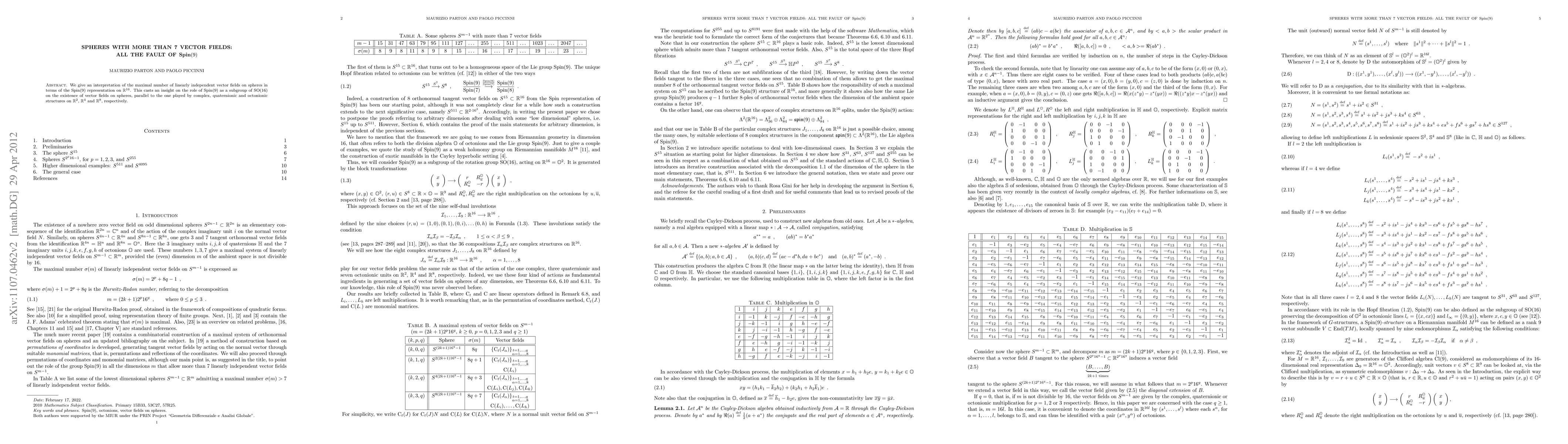 Summary: This paper explores the maximal number of linearly independent vector fields on spheres, linking it to the Spin(9) representation on R^16, and highlights Spin(9)’s role in determining vector field existence on spheres, analogous to the roles of complex, quaternionic, and octonionic structures on lower-dimensional spaces.