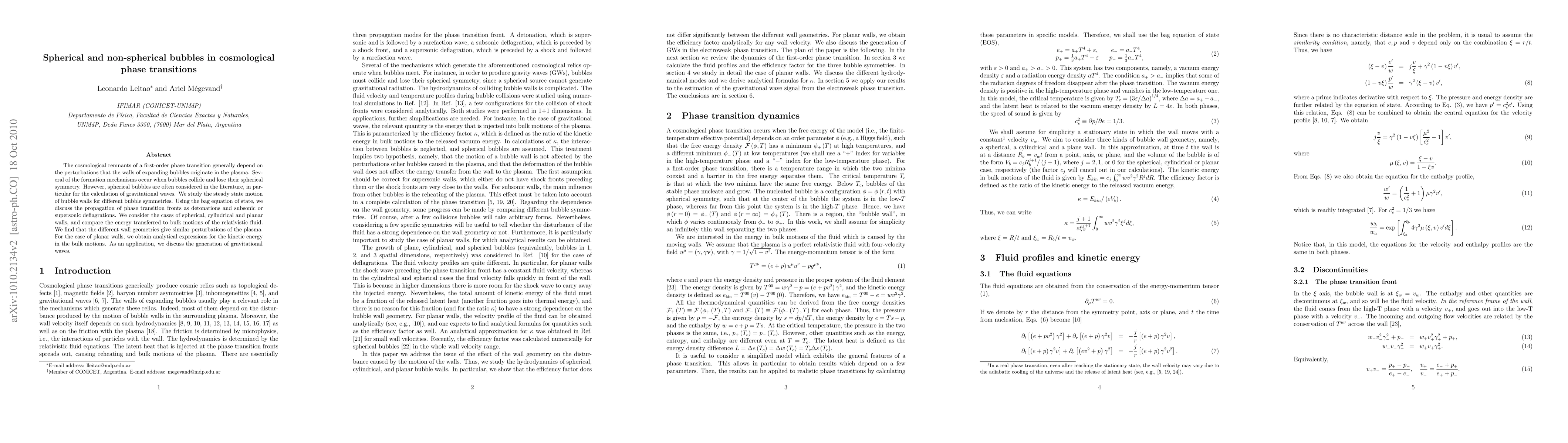 This research investigates the motion of bubble walls during cosmological phase transitions, considering spherical, cylindrical, and planar geometries. It finds that while different wall shapes result in distinct bulk fluid motions, the overall plasma perturbations are similar. Analytical expressions for kinetic energy in planar wall cases are derived, with implications for gravitational wave generation discussed.