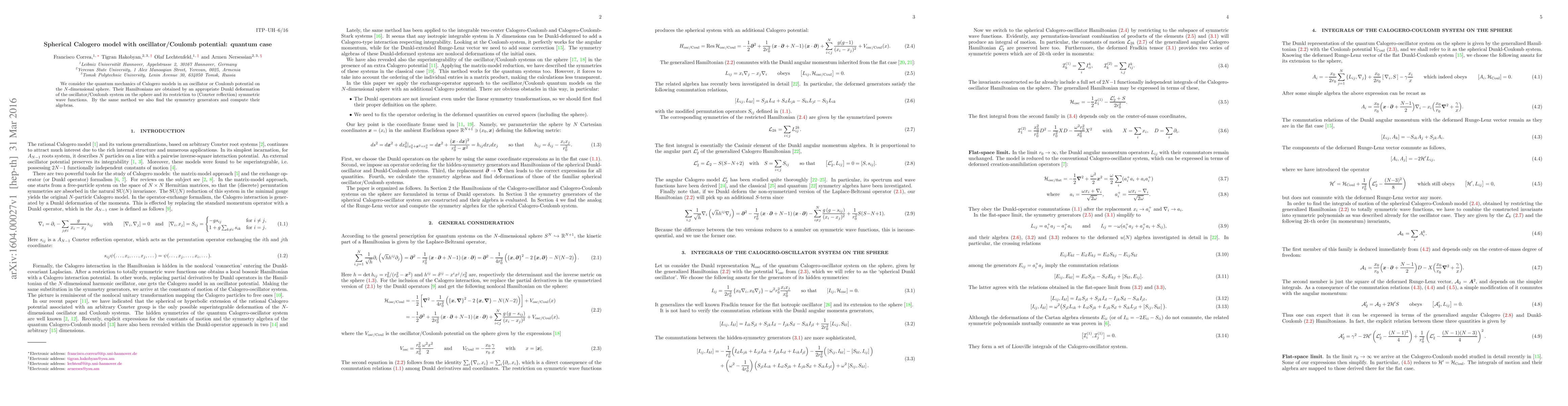 This paper explores the quantum mechanics of Calogero models on an N-dimensional sphere under an oscillator or Coulomb potential, deriving the Hamiltonians via Dunkl deformation and analyzing the symmetry generators and their corresponding algebras.