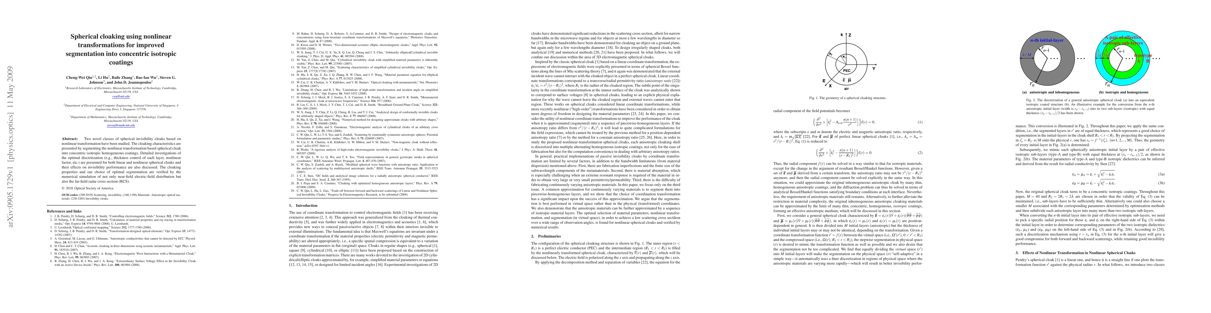 This paper introduces two types of spherical invisibility cloaks using nonlinear transformations, segmenting them into concentric isotropic coatings. It investigates optimal discretization strategies and verifies cloaking performance through numerical simulations of both near-field electric fields and far-field radar cross sections.