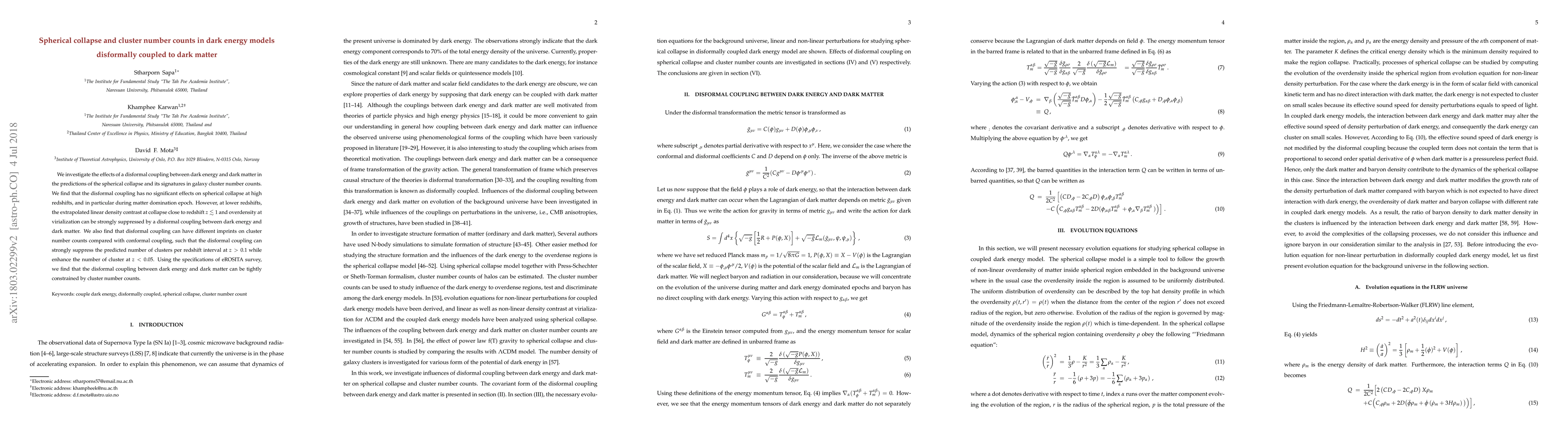 This paper examines the impact of disformal coupling between dark energy and dark matter on spherical collapse and galaxy cluster number counts, finding minimal effects at high redshifts but significant suppression of collapse and overdensity at lower redshifts. It concludes that disformal coupling can notably alter cluster number counts, potentially constraining the coupling through observational data.