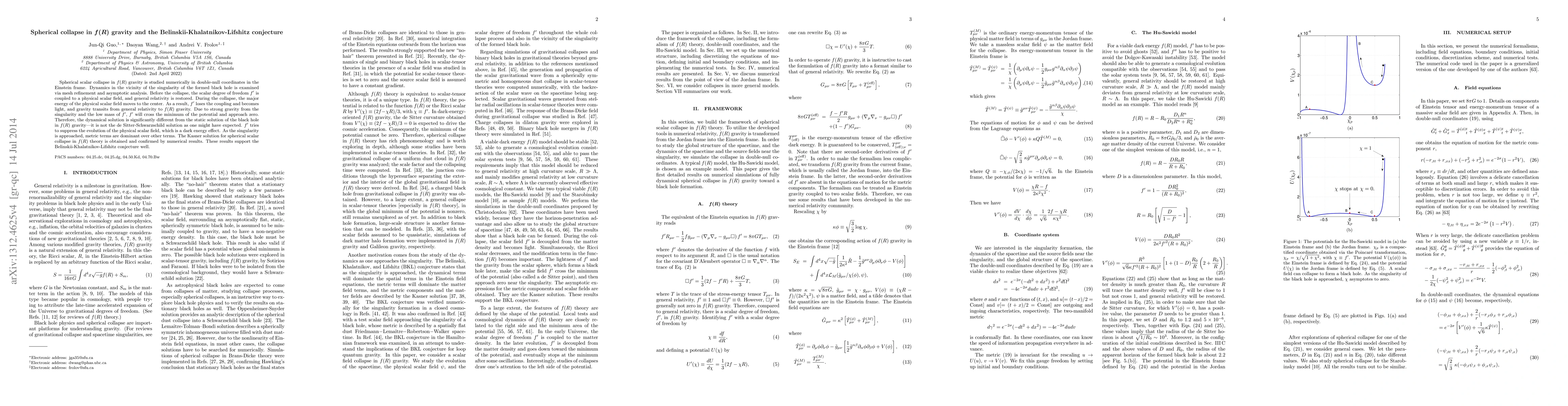 Researchers studied spherical scalar collapse in f(R) gravity, finding that it differs from expected solutions due to a 'dark energy' effect, and confirmed the Belinskii-Khalatnikov-Lifshitz conjecture through numerical simulations.