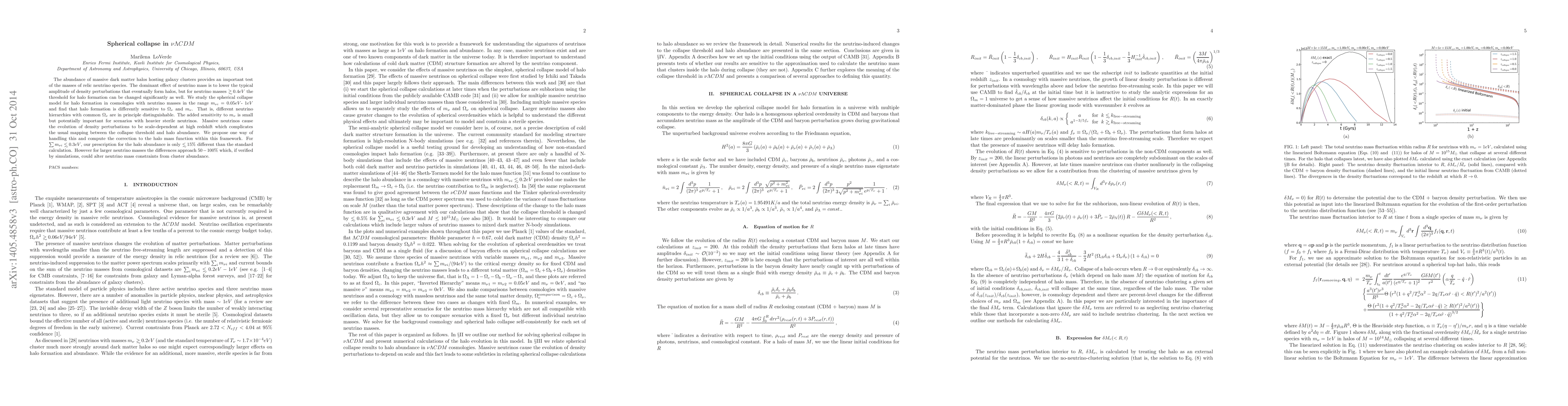 The abundance of massive dark matter halos hosting galaxy clusters provides an important test of the masses of relic neutrino species. The dominant effect of neutrino mass is to lower the typical amplitude of density perturbations that eventually form halos, but for neutrino masses $> 0.4eV$ the threshold for halo formation can be changed significantly as well. We study the spherical collapse model for halo formation in cosmologies with neutrino masses in the range $m_{\nu i} =0.05eV$- $1eV$ and find that halo formation is differently sensitive to $\Omega_\nu$ and $m_\nu$. That is, different neutrino hierarchies with common $\Omega_\nu$ are in principle distinguishable. The added sensitivity to $m_{\nu}$ is small but potentially important for scenarios with heavier sterile neutrinos. Massive neutrinos cause the evolution of density perturbations to be scale-dependent at high redshift which complicates the usual mapping between the collapse threshold and halo abundance. We propose one way of handling this and compute the correction to the halo mass function within this framework. For $\sum m_{\nu i} < 0.3eV$, our prescription for the halo abundance is only $\sim< 15\%$ different than the standard calculation. However for larger neutrino masses the differences approach $50-10\%$ which, if verified by simulations, could alter neutrino mass constraints from cluster abundance.