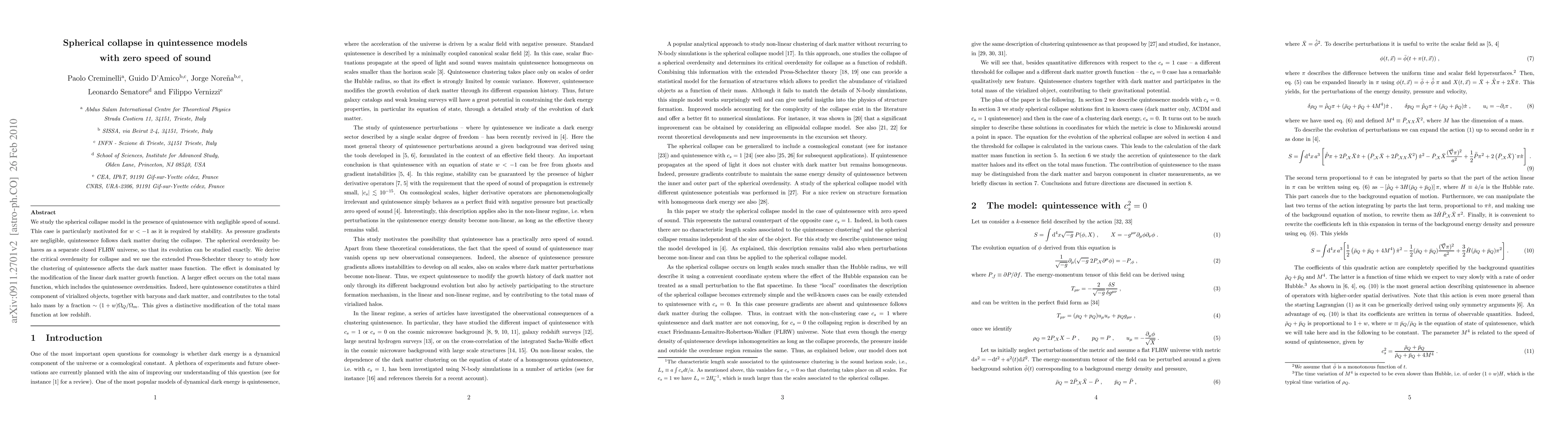 This paper investigates the spherical collapse of quintessence with zero speed of sound in models where w<-1, finding that it behaves similarly to dark matter during collapse. The study reveals a significant modification to the total mass function due to quintessence, contributing a fraction ~(1+w)Ω_Q / Ω_m to the total halo mass.