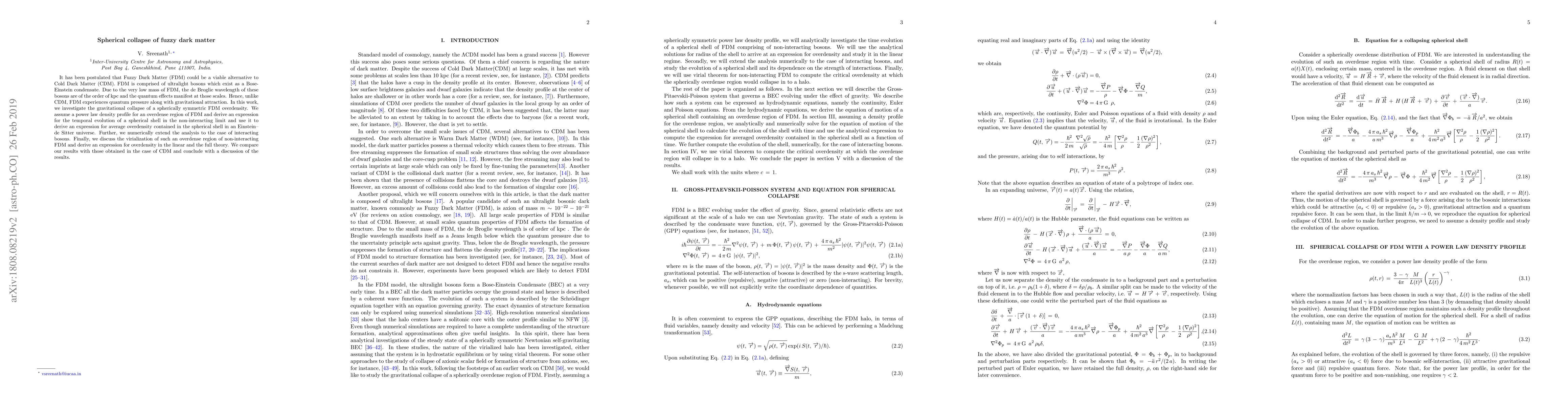 This research investigates the gravitational collapse of spherically symmetric Fuzzy Dark Matter (FDM) overdensities, deriving expressions for temporal evolution and overdensity. It compares findings with Cold Dark Matter (CDM), highlighting potential differences due to quantum pressure in FDM, and concludes with a discussion on virialization and implications for dark matter models.