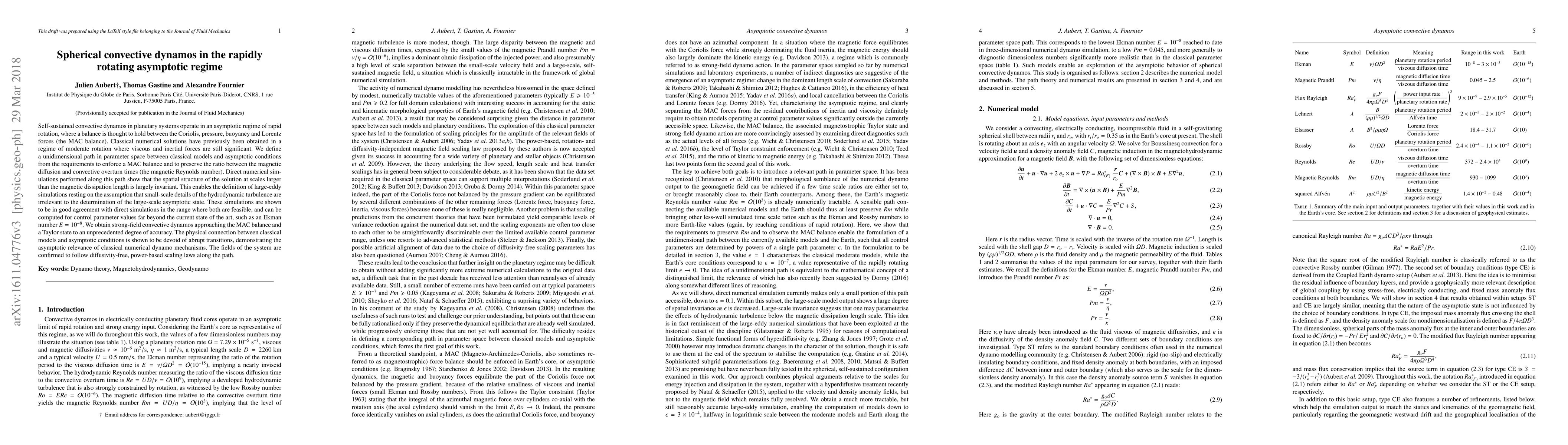 Self-sustained convective dynamos in planetary systems operate in an asymptotic regime of rapid rotation, where a balance is thought to hold between the Coriolis, pressure, buoyancy and Lorentz forces (the MAC balance). Classical numerical solutions have previously been obtained in a regime of moderate rotation where viscous and inertial forces are still significant. We define a unidimensional path in parameter space between classical models and asymptotic conditions from the requirements to enforce a MAC balance and to preserve the ratio between the magnetic diffusion and convective overturn times (the magnetic Reynolds number). Direct numerical simulations performed along this path show that the spatial structure of the solution at scales larger than the magnetic dissipation length is largely invariant. This enables the definition of large-eddy simulations resting on the assumption that small-scale details of the hydrodynamic turbulence are irrelevant to the determination of the large-scale asymptotic state. These simulations are shown to be in good agreement with direct simulations in the range where both are feasible, and can be computed for control parameter values far beyond the current state of the art, such as an Ekman number $E=10^{-8}$. We obtain strong-field convective dynamos approaching the MAC balance and a Taylor state to an unprecedented degree of accuracy. The physical connection between classical models and asymptotic conditions is shown to be devoid of abrupt transitions, demonstrating the asymptotic relevance of classical numerical dynamo mechanisms. The fields of the system are confirmed to follow diffusivity-free, power-based scaling laws along the path.
