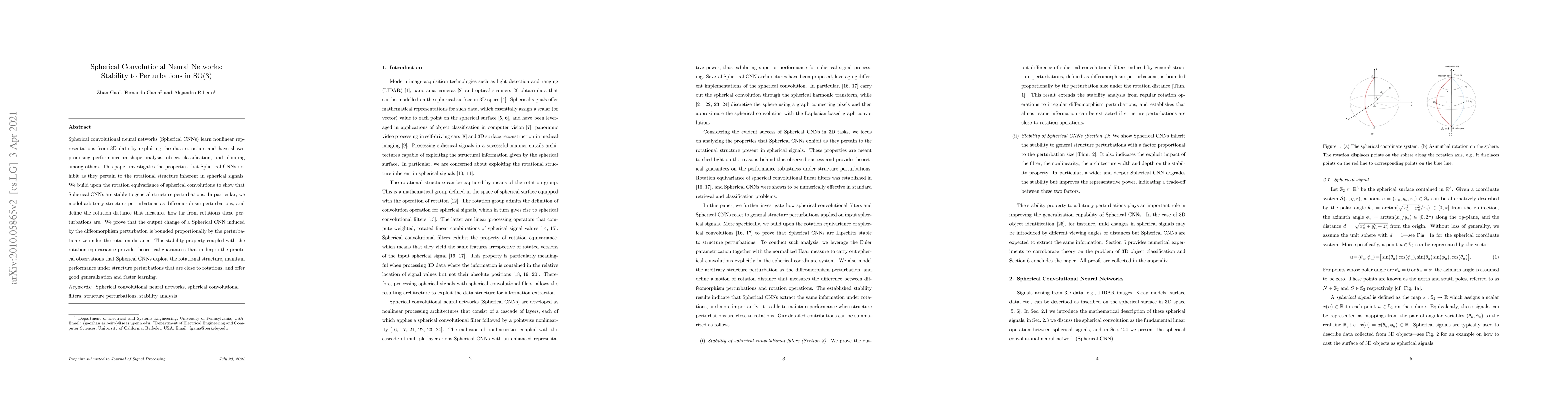This research paper explores the stability of spherical convolutional neural networks (Spherical CNNs) under perturbations in the rotational structure inherent in spherical signals. The study demonstrates that Spherical CNNs maintain their performance and generalization capabilities even when subjected to perturbations modeled as diffeomorphisms, providing theoretical underpinnings for their practical effectiveness in tasks like shape analysis and object classification.