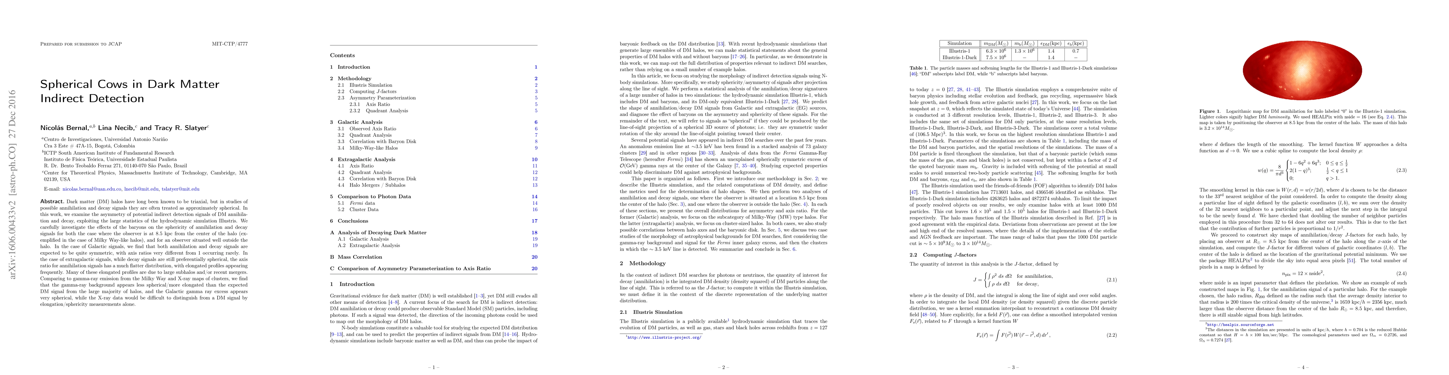Dark matter (DM) halos have long been known to be triaxial, but in studies of possible annihilation and decay signals they are often treated as approximately spherical. In this work, we examine the asymmetry of potential indirect detection signals of DM annihilation and decay, exploiting the large statistics of the hydrodynamic simulation Illustris. We carefully investigate the effects of the baryons on the sphericity of annihilation and decay signals for both the case where the observer is at 8.5 kpc from the center of the halo (exemplified in the case of Milky Way-like halos), and for an observer situated well outside the halo. In the case of Galactic signals, we find that both annihilation and decay signals are expected to be quite symmetric, with axis ratios very different from 1 occurring rarely. In the case of extragalactic signals, while decay signals are still preferentially spherical, the axis ratio for annihilation signals has a much flatter distribution, with elongated profiles appearing frequently. Many of these elongated profiles are due to large subhalos and/or recent mergers. Comparing to gamma-ray emission from the Milky Way and X-ray maps of clusters, we find that the gamma-ray background appears less spherical/more elongated than the expected DM signal from the large majority of halos, and the Galactic gamma ray excess appears very spherical, while the X- ray data would be difficult to distinguish from a DM signal by elongation/sphericity measurements alone.