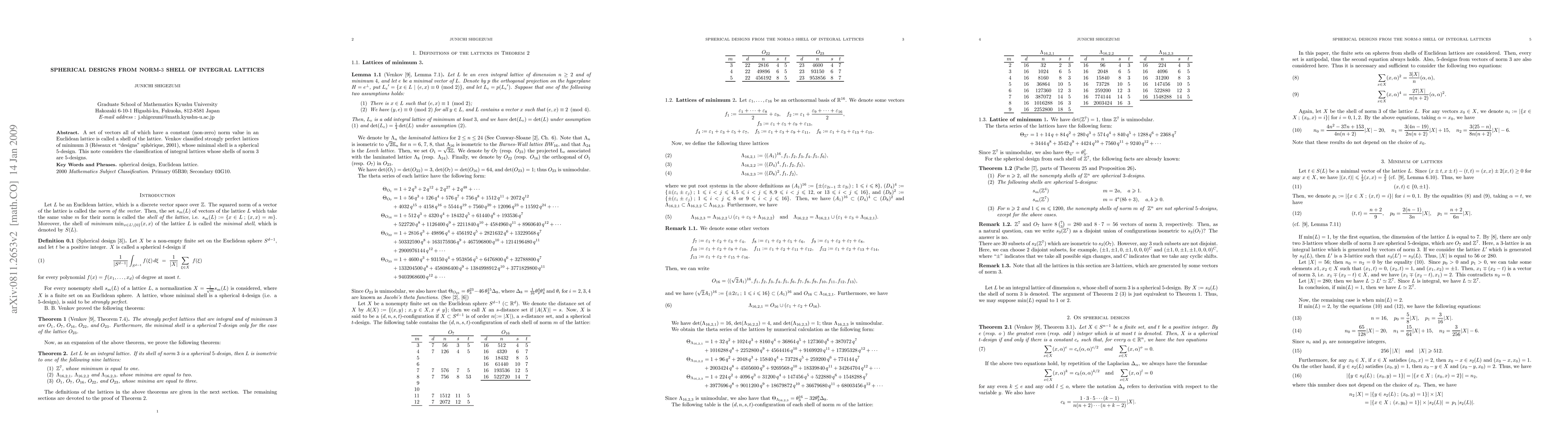 This paper classifies integral lattices whose norm-3 shells form spherical 5-designs, extending Venkov's work on strongly perfect lattices with minimal shells that are spherical 5-designs. The focus is on identifying such lattices in Euclidean space.