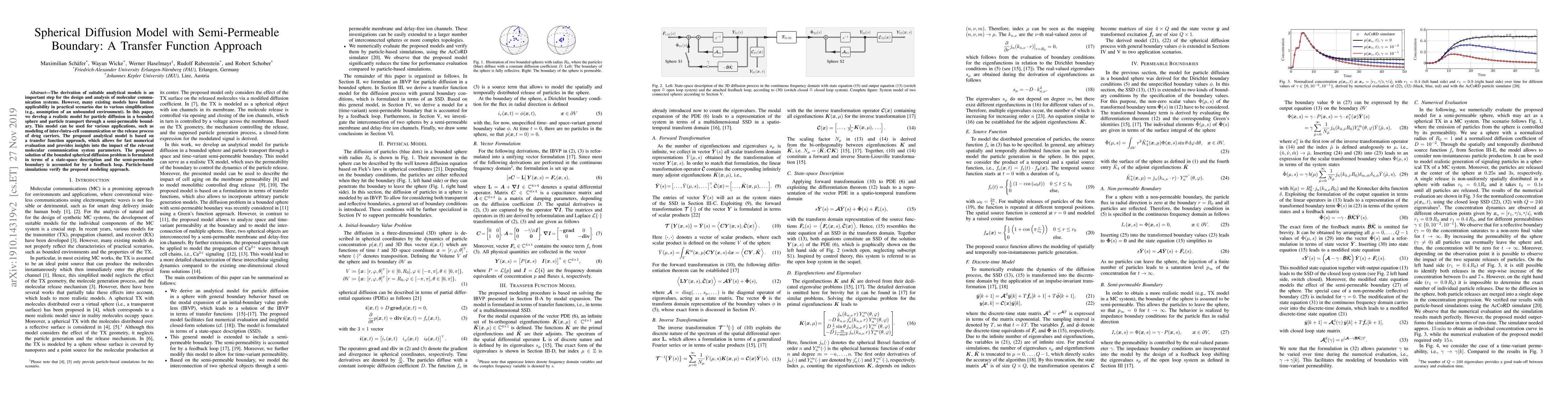 This paper develops an analytical model for particle diffusion within a bounded sphere and through a semi-permeable boundary using a transfer function approach. The model provides insights into molecular communication systems and is validated through particle-based simulations.