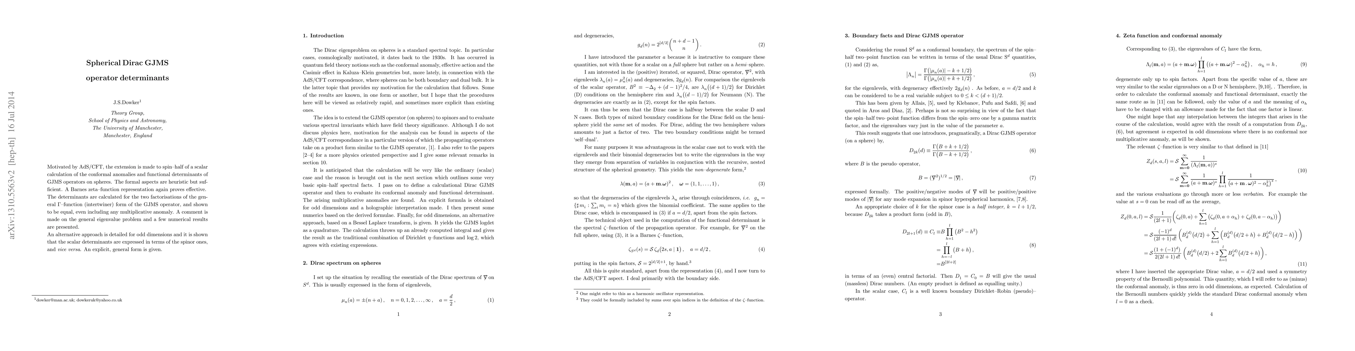 This paper extends scalar conformal anomaly and determinant calculations to spin-half, using the GJMS operator and a Barnes zeta function representation. It demonstrates equality in determinants for two factorisations of the GJMS operator, including the multiplicative anomaly, and provides an alternative approach for odd dimensions linking scalar and spinor determinants.