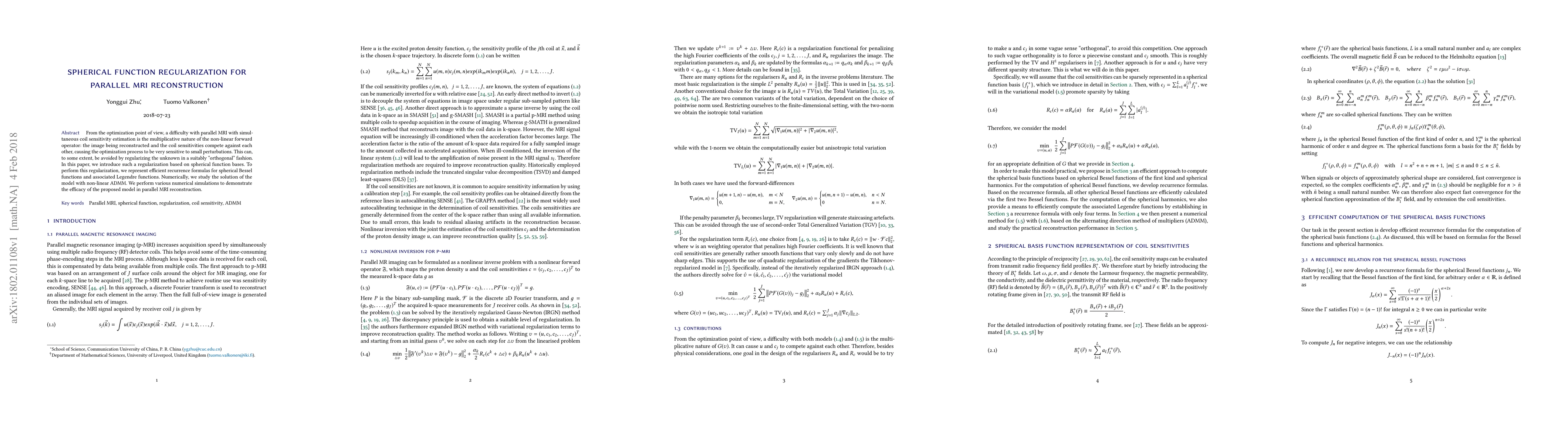 The paper presents a novel approach to parallel MRI reconstruction by leveraging spherical function bases for regularization, which results in improved reconstruction quality and robustness.