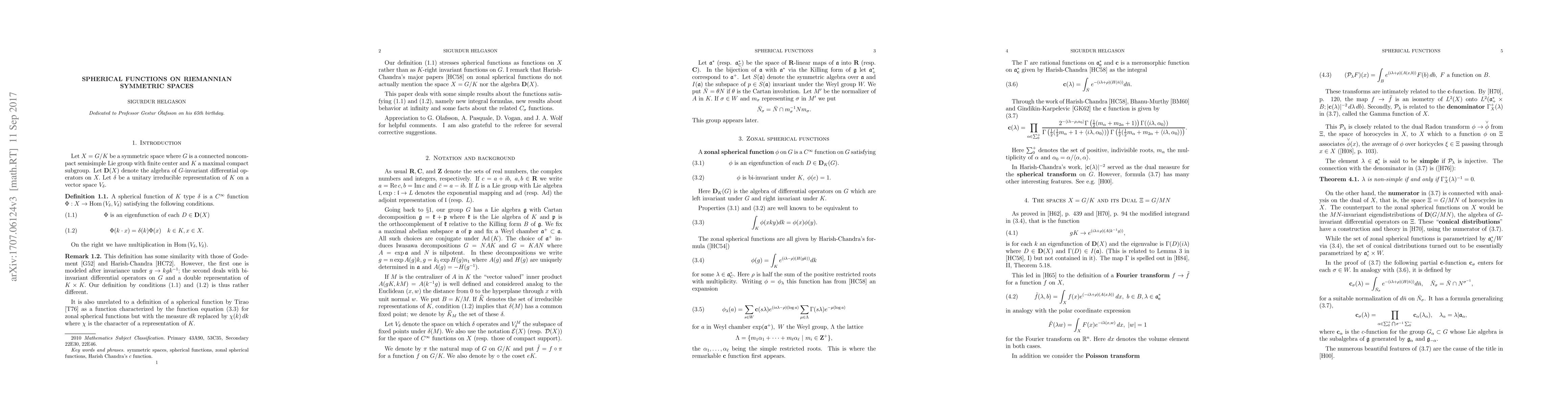 This paper deals with some simple results about spherical functions of type $\delta$, namely new integral formulas, new results about behavior at infinity and some facts about the related $C_\sigma$ functions.