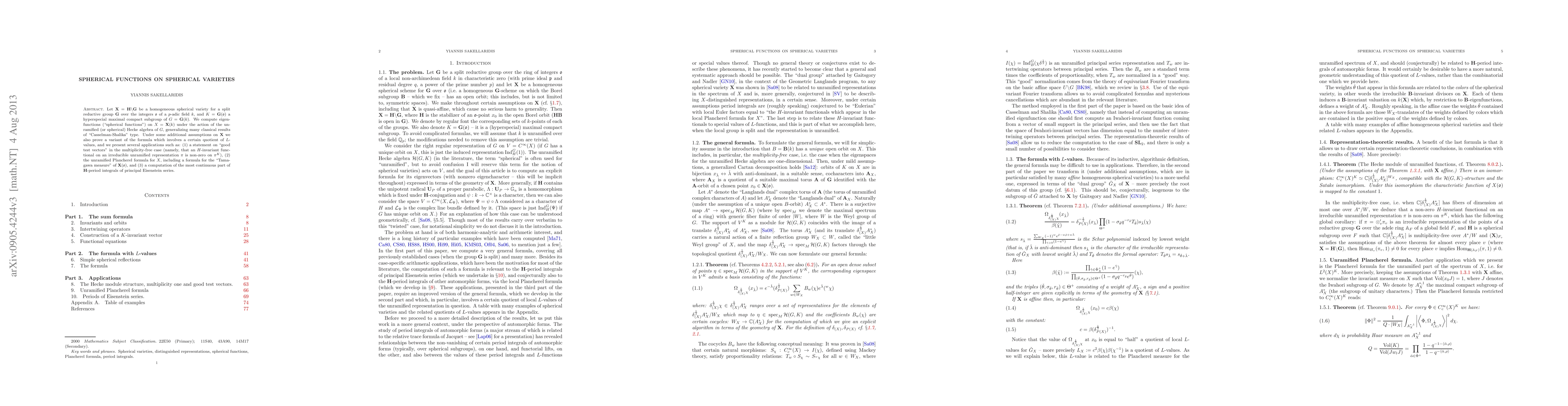 This paper computes eigenfunctions on homogeneous spherical varieties for split reductive groups over p-adic fields, generalizing classical results and proving a variant formula involving L-values. Applications include statements on good test vectors, the unramified Plancherel formula, and computations of period integrals.
