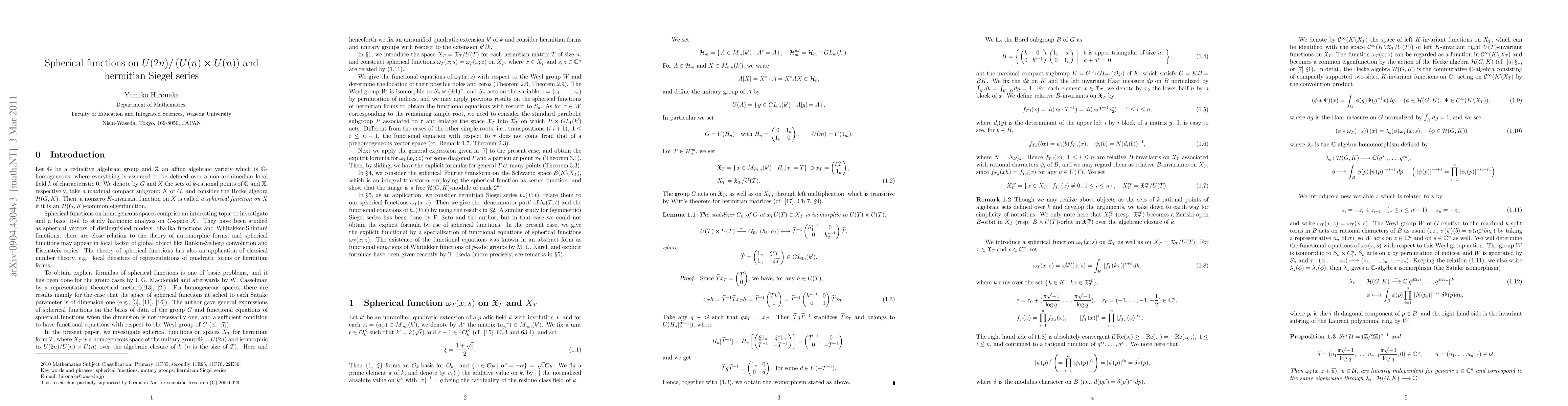 Summary: This paper investigates spherical functions on $U(n,n)/(U(n) \times U(n))$ over a $p$-adic field, exploring their functional equations, poles, zeros, and Fourier transforms. It concludes with a functional equation for $p$-adic local hermitian Siegel series.