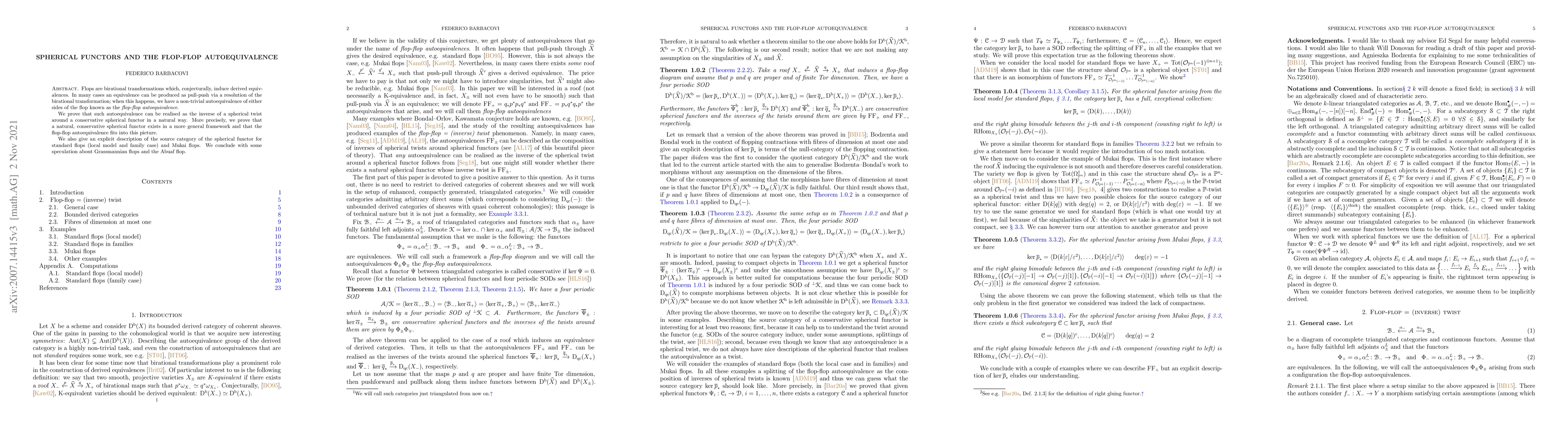 This paper proves that the flop-flop autoequivalence can be realized as the inverse of a spherical twist around a conservative, spherical functor in a natural framework. It provides an explicit description of the source category for standard and Mukai flops and speculates on Grassmannian and Abuaf flops.