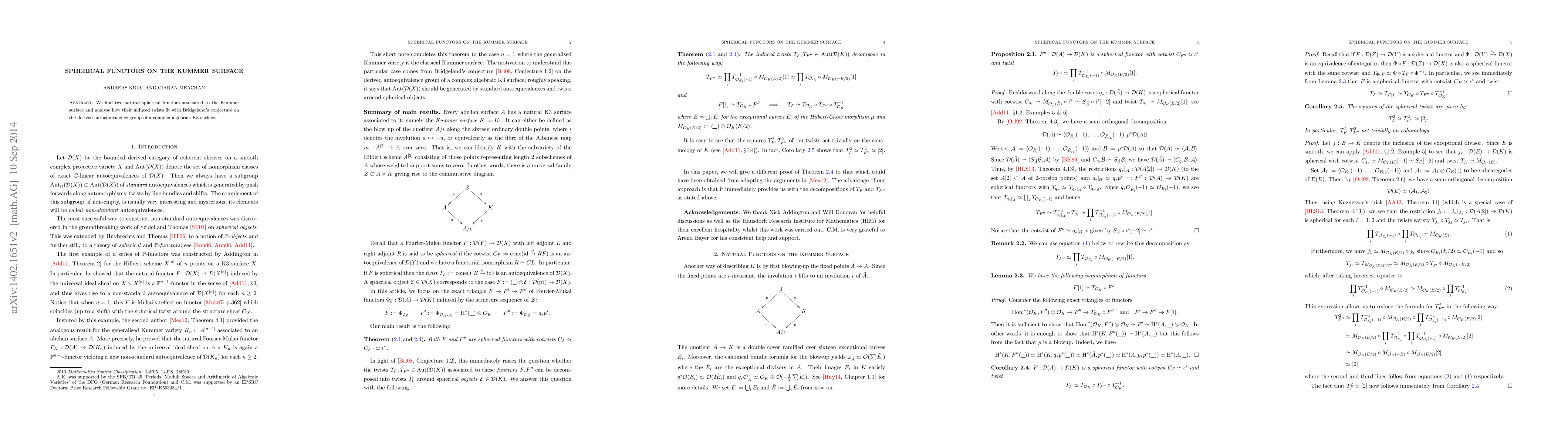 This paper identifies two natural spherical functors linked to the Kummer surface and explores how their induced twists align with Bridgeland's conjecture regarding the derived autoequivalence group of a complex algebraic K3 surface. The findings provide insights into the structure of these functors and their implications for the conjecture.