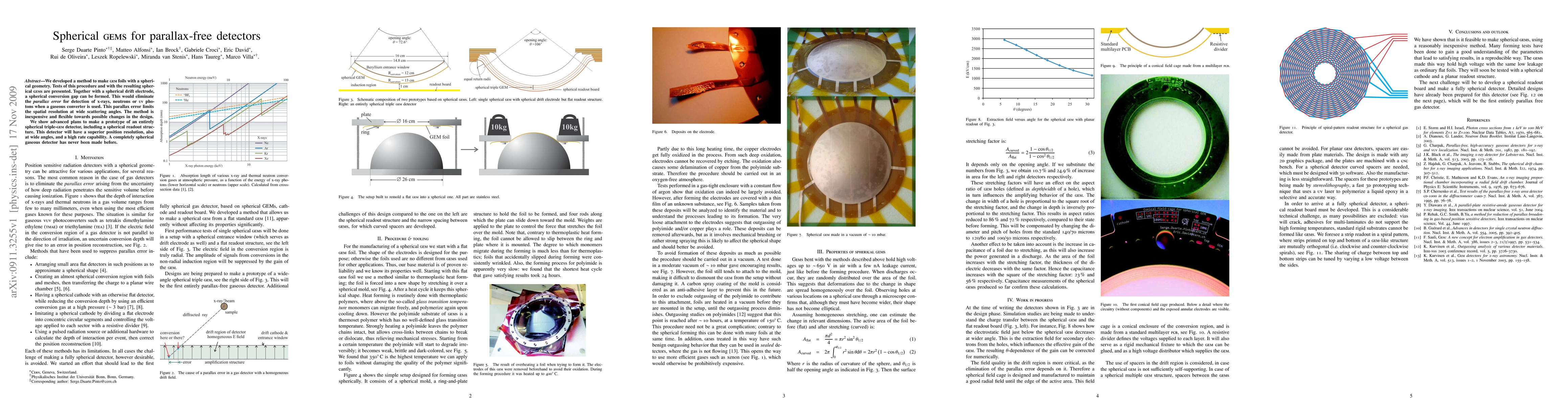 We developed a method to make GEM foils with a spherical geometry. Tests of this procedure and with the resulting spherical \textsc{gem}s are presented. Together with a spherical drift electrode, a spherical conversion gap can be formed. This would eliminate the parallax error for detection of x-rays, neutrons or UV photons when a gaseous converter is used. This parallax error limits the spatial resolution at wide scattering angles. The method is inexpensive and flexible towards possible changes in the design. We show advanced plans to make a prototype of an entirely spherical triple-GEM detector, including a spherical readout structure. This detector will have a superior position resolution, also at wide angles, and a high rate capability. A completely spherical gaseous detector has never been made before.