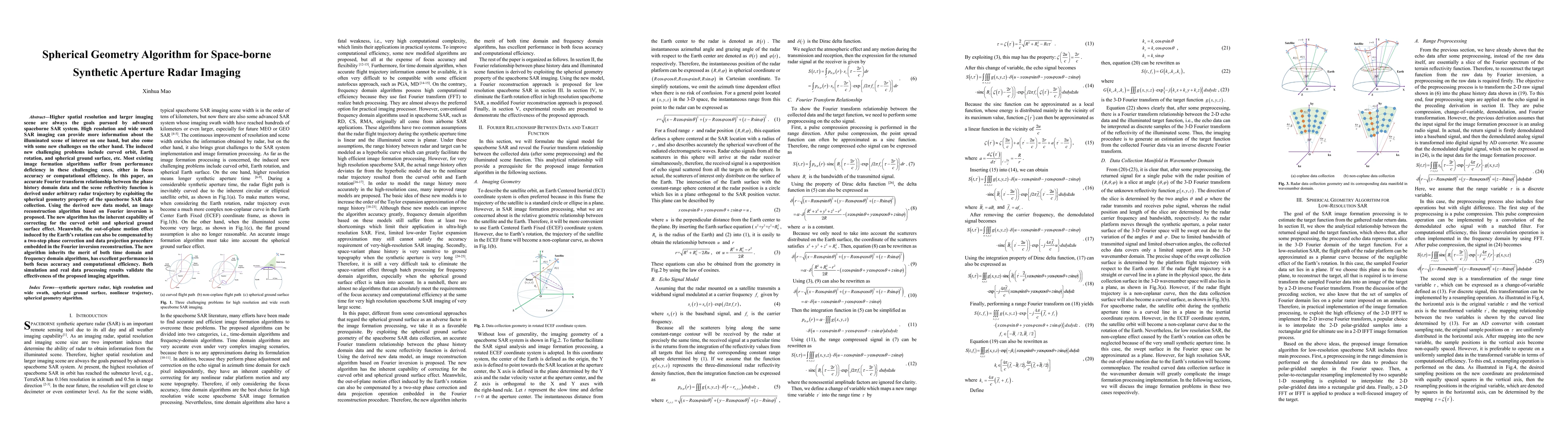 This paper proposes an advanced imaging algorithm for space-borne synthetic aperture radar (SAR) that accurately models spherical geometry to correct for curved orbit and Earth's rotation effects, improving focus accuracy and computational efficiency. Simulation and real data results confirm the algorithm's effectiveness.