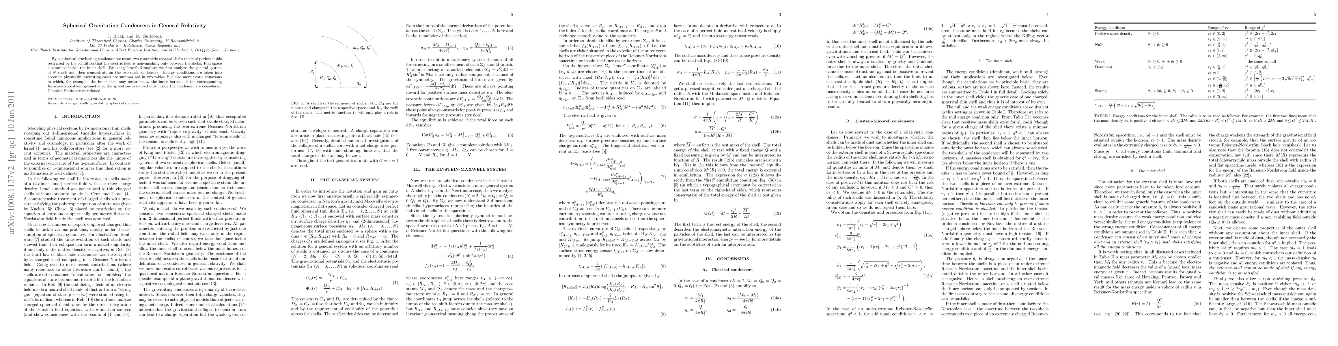 Researchers explored spherical gravitating condensers in general relativity, analyzing systems of N shells and focusing on two-shell condensers to understand energy conditions and exotic situations.