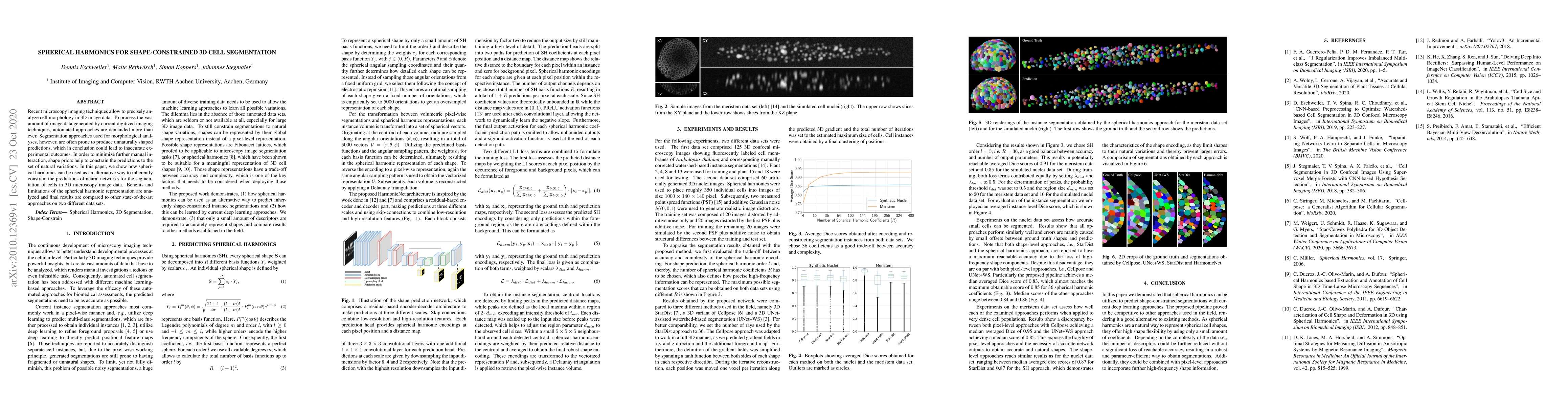 This paper proposes using spherical harmonics to constrain neural network predictions for 3D cell segmentation in microscopy imaging, aiming to produce more natural cell shapes. The method's benefits and limitations are analyzed and compared to other state-of-the-art segmentation techniques on two datasets.