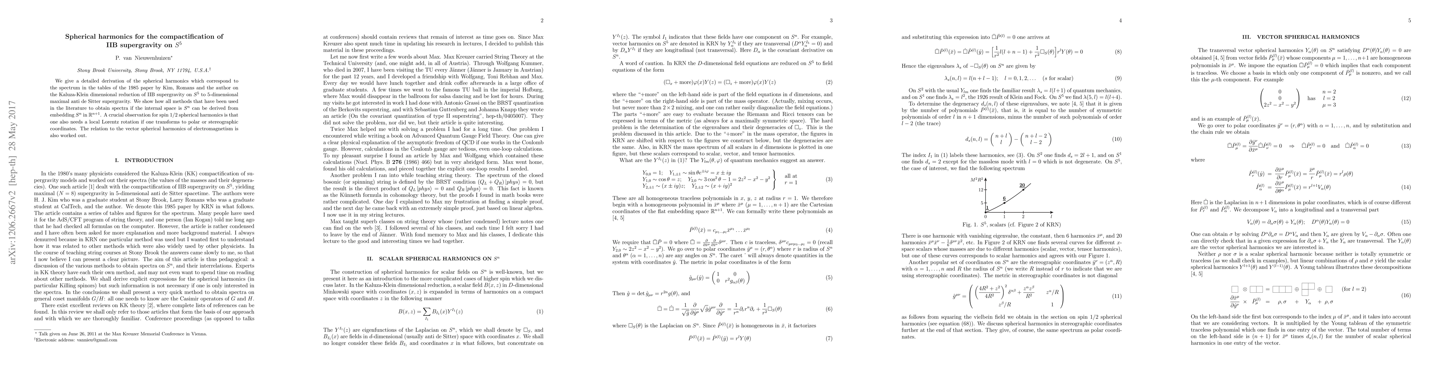 We give a detailed derivation of the spherical harmonics which correspond to the spectrum in the tables of the 1985 paper by Kim, Romans and the author on the Kaluza-Klein dimensional reduction of IIB supergravity on $S_5$ to 5-dimensional maximal anti de Sitter supergravity. We show how all methods that have been used in the literature to obtain spectra if the internal space is $S_n$ can be derived from embedding $S_n$ in $R^{n+1}$. A crucial observation for spin 1/2 spherical harmonics is that one also needs a local Lorentz rotation if one transforms to polar or stereographic coordinates. The relation to the vector spherical harmonics of electromagnetism is also worked out.