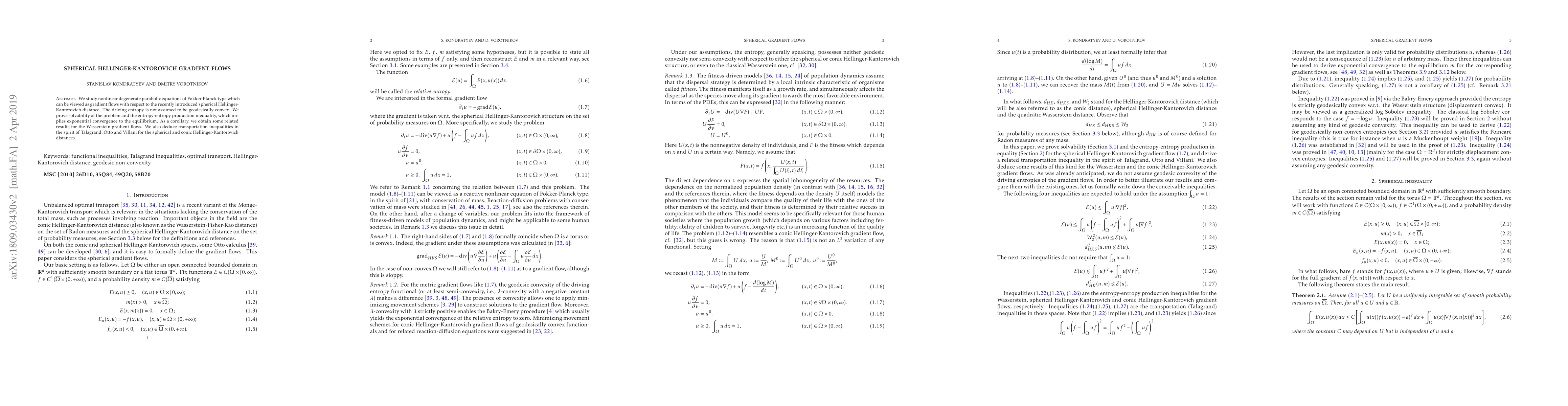 We study nonlinear degenerate parabolic equations of Fokker-Planck type which can be viewed as gradient flows with respect to the recently introduced spherical Hellinger-Kantorovich distance. The driving entropy is not assumed to be geodesically convex. We prove solvability of the problem and the entropy-entropy production inequality, which implies exponential convergence to the equilibrium. As a corollary, we obtain some related results for the Wasserstein gradient flows. We also deduce transportation inequalities in the spirit of Talagrand, Otto and Villani for the spherical and conic Hellinger-Kantorovich distances.