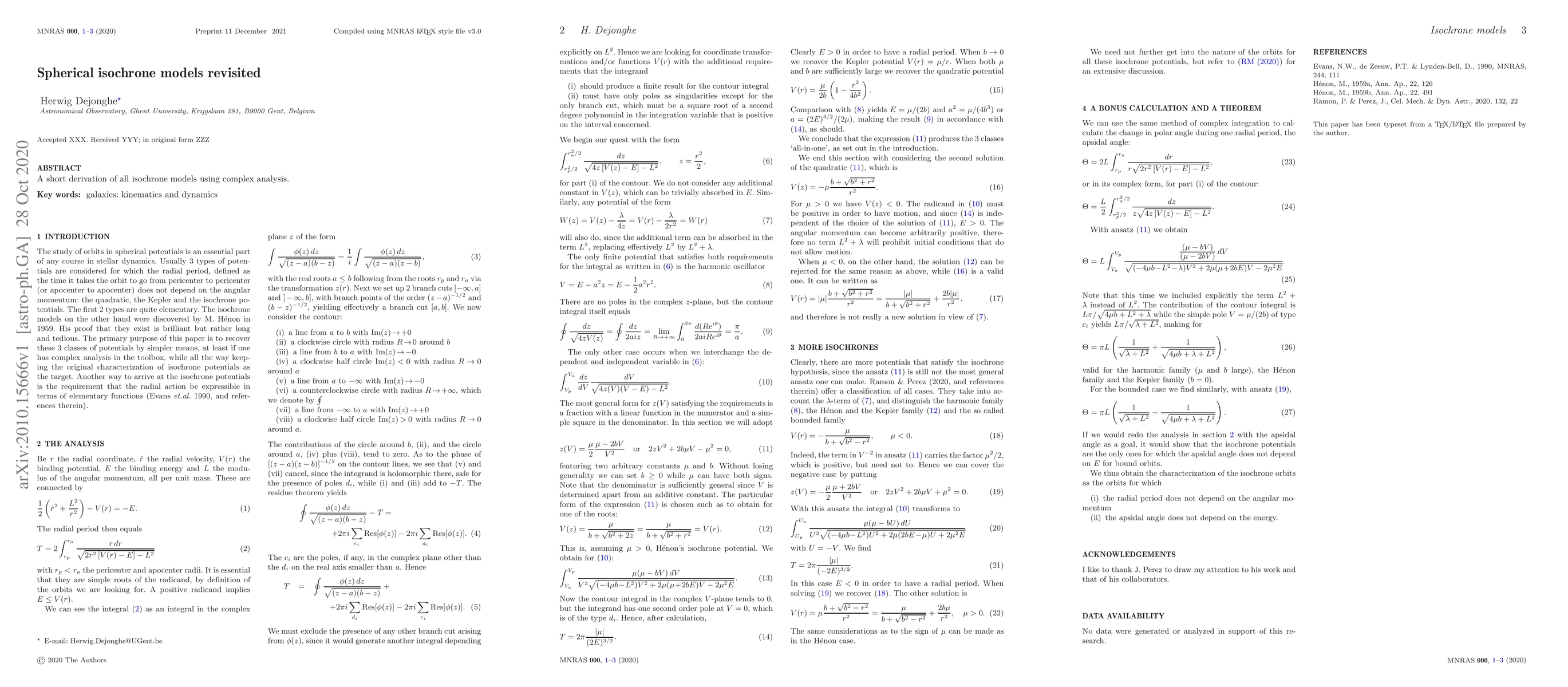 Summary: This paper revisits spherical isochrone models through a concise derivation leveraging complex analysis, providing a novel approach to understanding these models. The method simplifies the derivation process and offers new insights into the underlying mathematical structures.