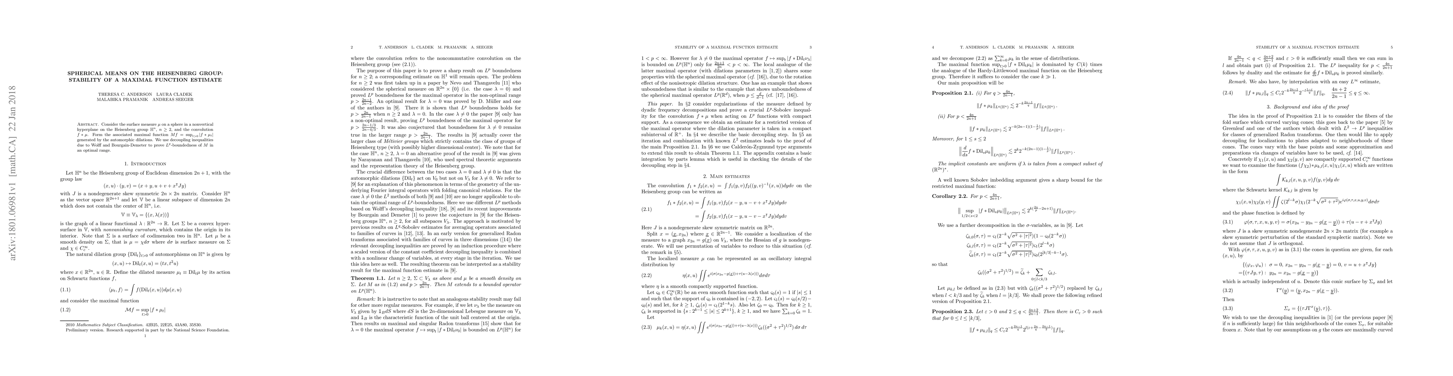 Summary: This paper proves the optimal $L^p$-boundedness of a maximal function on the Heisenberg group using decoupling inequalities, focusing on the convolution of a function with the surface measure on spheres in nonvertical hyperplanes. The result leverages techniques from Wolff and Bourgain-Demeter.