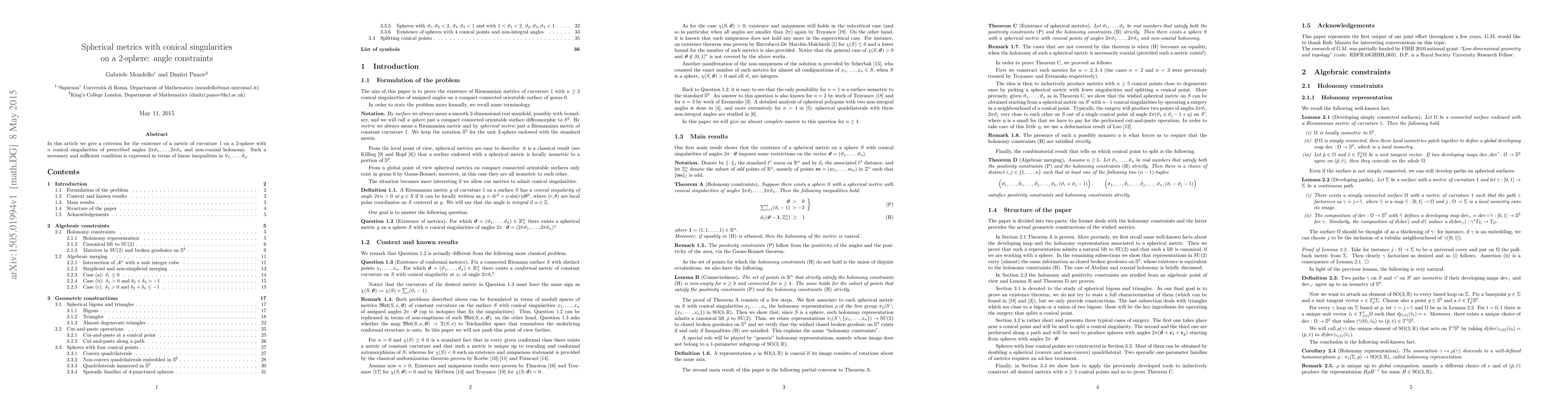 In this article we give a criterion for the existence of a metric of curvature $1$ on a $2$-sphere with $n$ conical singularities of prescribed angles $2\pi\vartheta_1,\dots,2\pi\vartheta_n$ and non-coaxial holonomy. Such a necessary and sufficient condition is expressed in terms of linear inequalities in $\vartheta_1,\dots,\vartheta_n$.